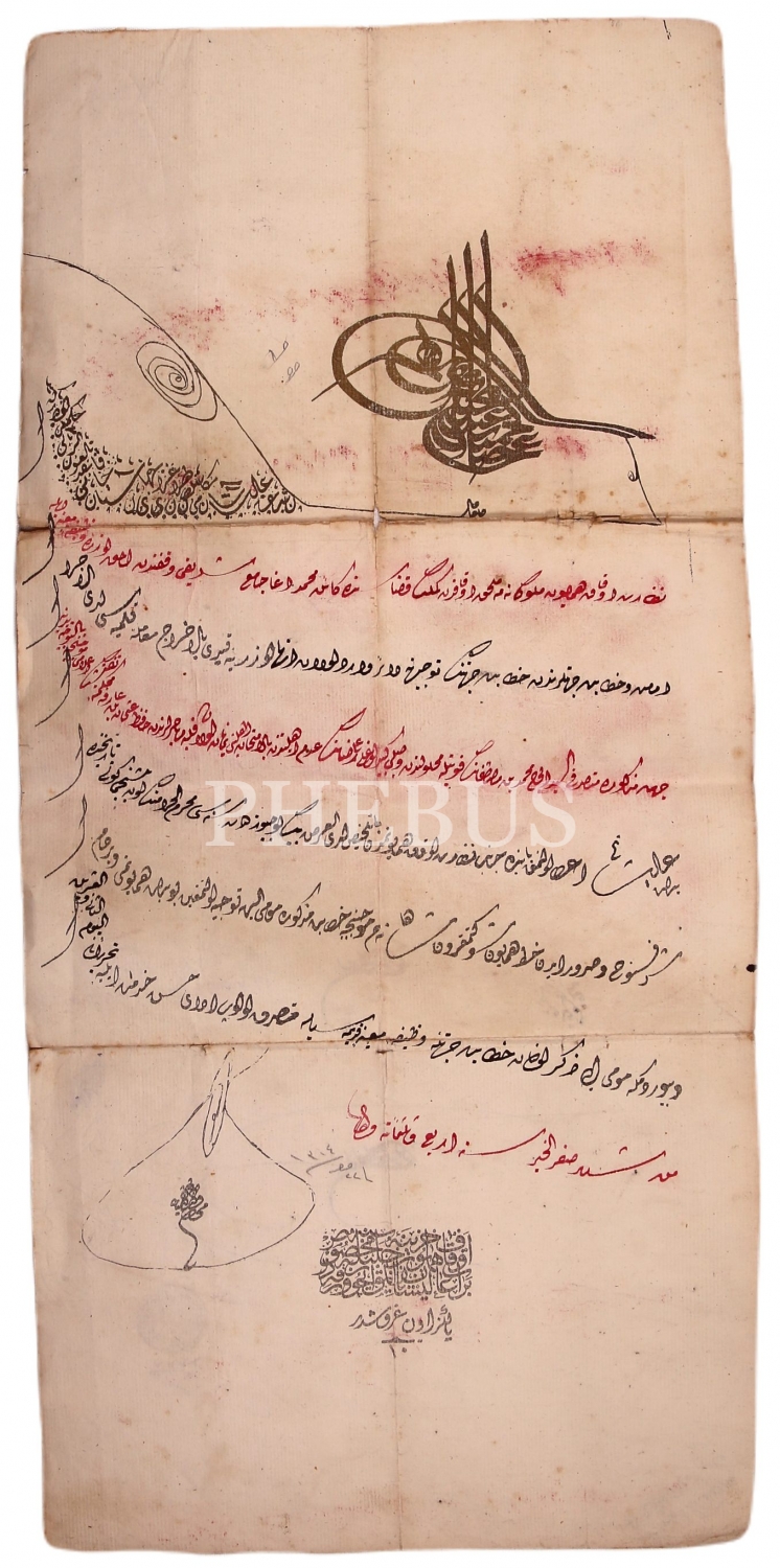 Gemlik kazasında kahin Mahmut Ağa Cami vakfından vazifeli imamet ve hitabet atama beratı, 1204 tarihli, Osmanlıca, 29x60 cm