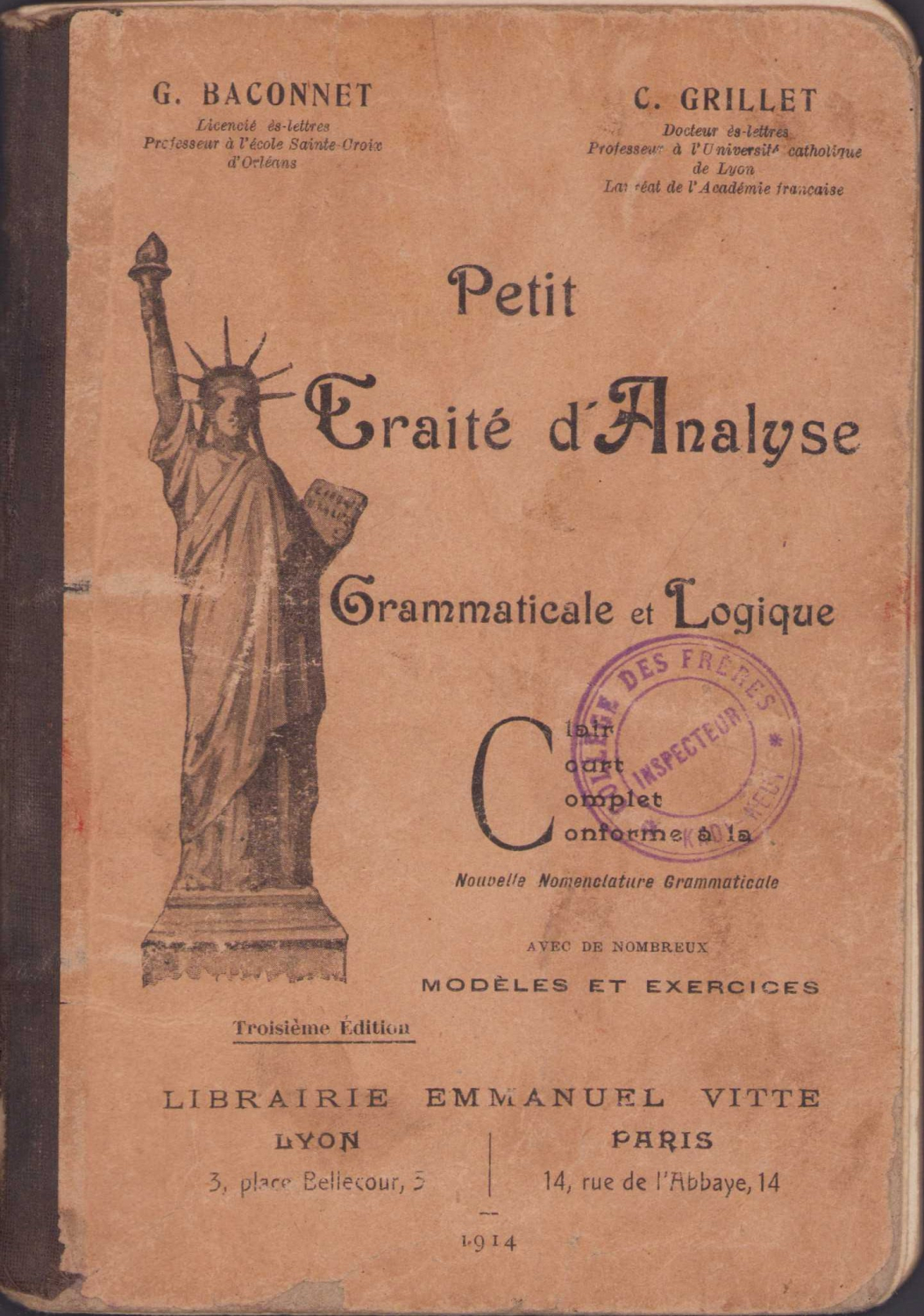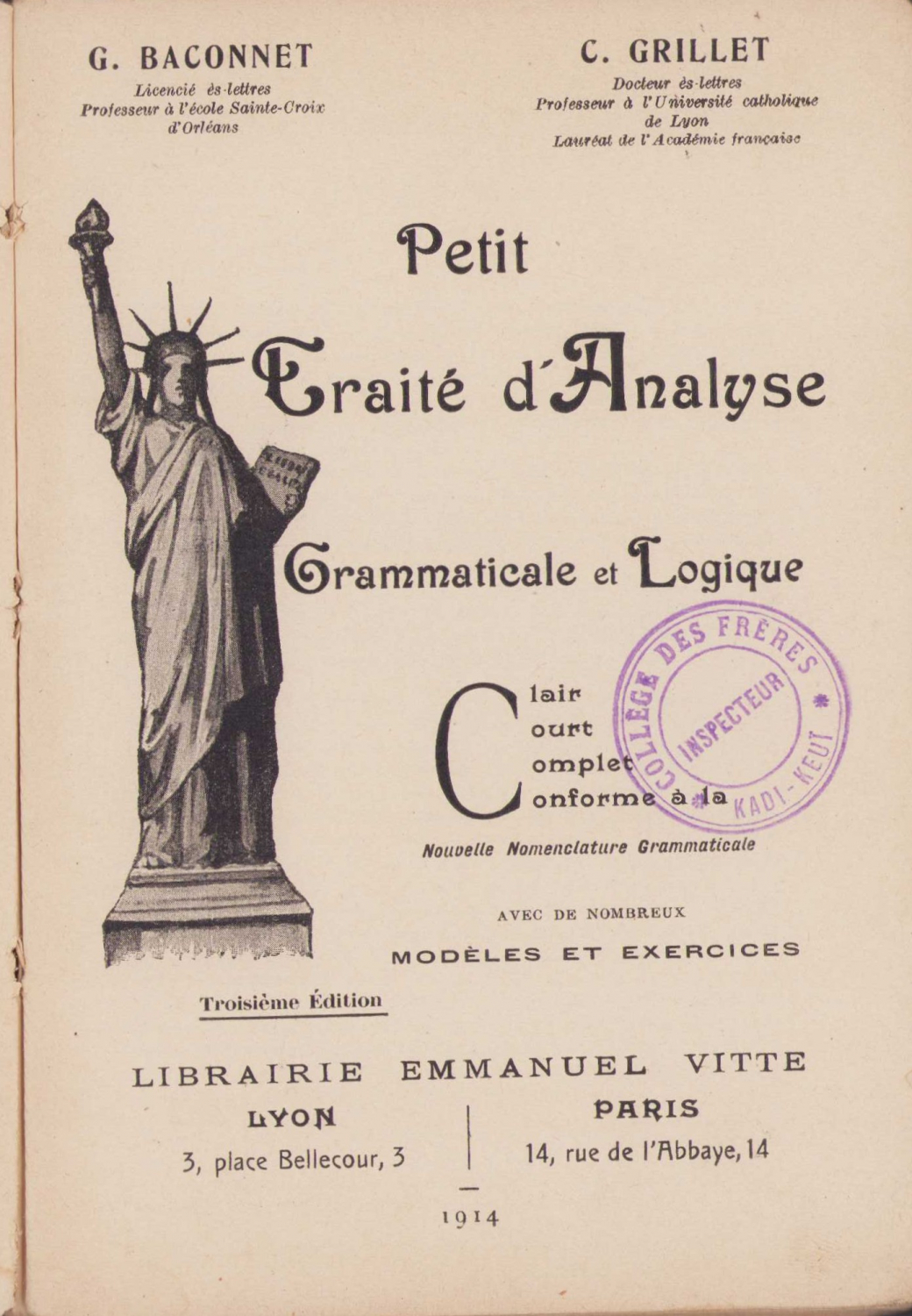 Petit traité D'Analyse Grammaticale Et Logique: Livre du Maître (Dilbilgisi ve mantıksal analiz üzerine küçük bir inceleme: yüksek lisans kitabı), G. Baconnet, Paris, 1914, Fransızca, 86 sayfa, 12x17cm