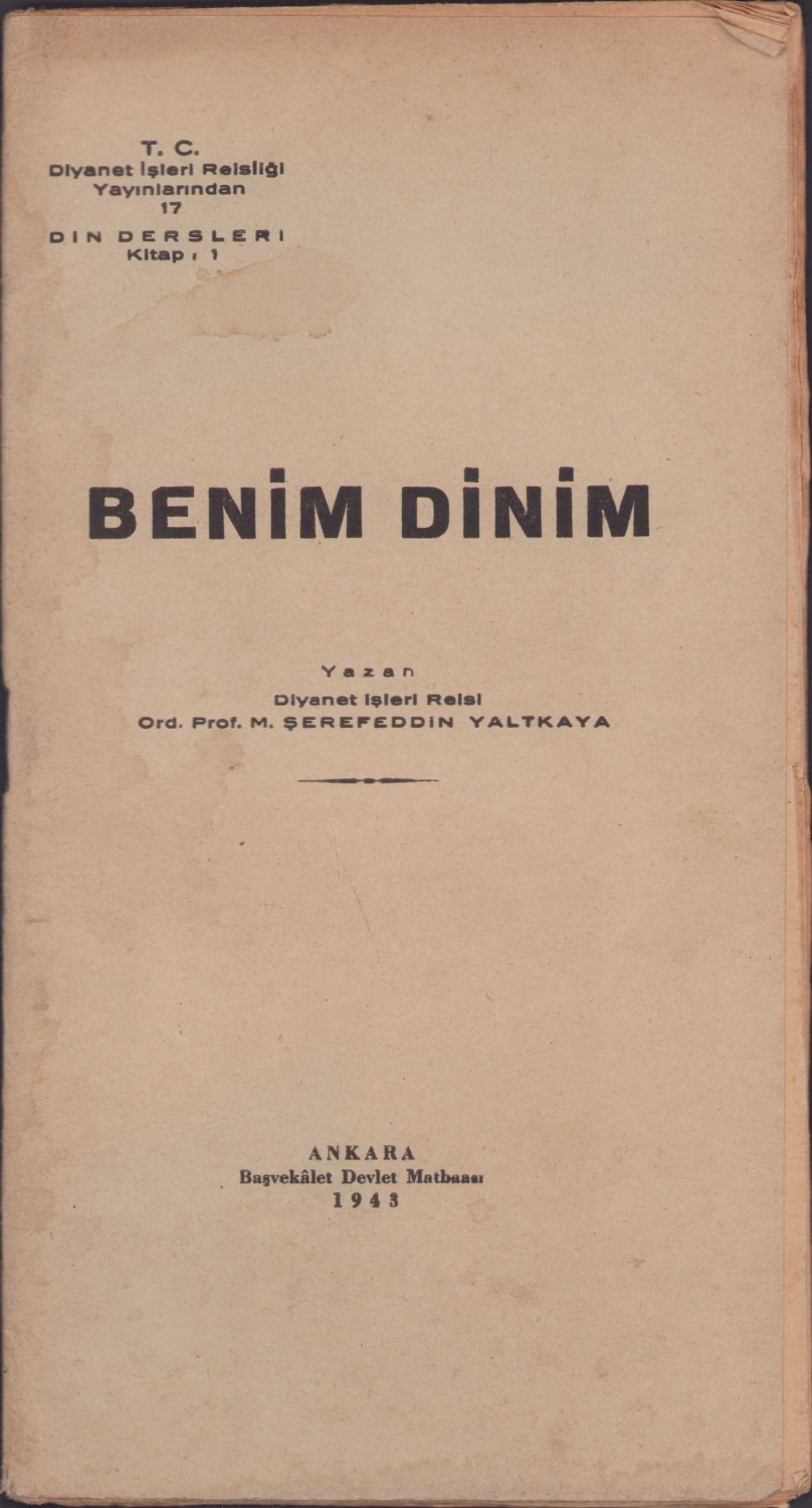 Benim Dinim, Ord. Prof. M. Şerefeddin Yaltkaya, Başvekalet Devlet Matbaası, Ankara, 1943, 41 sayfa, 12x23cm