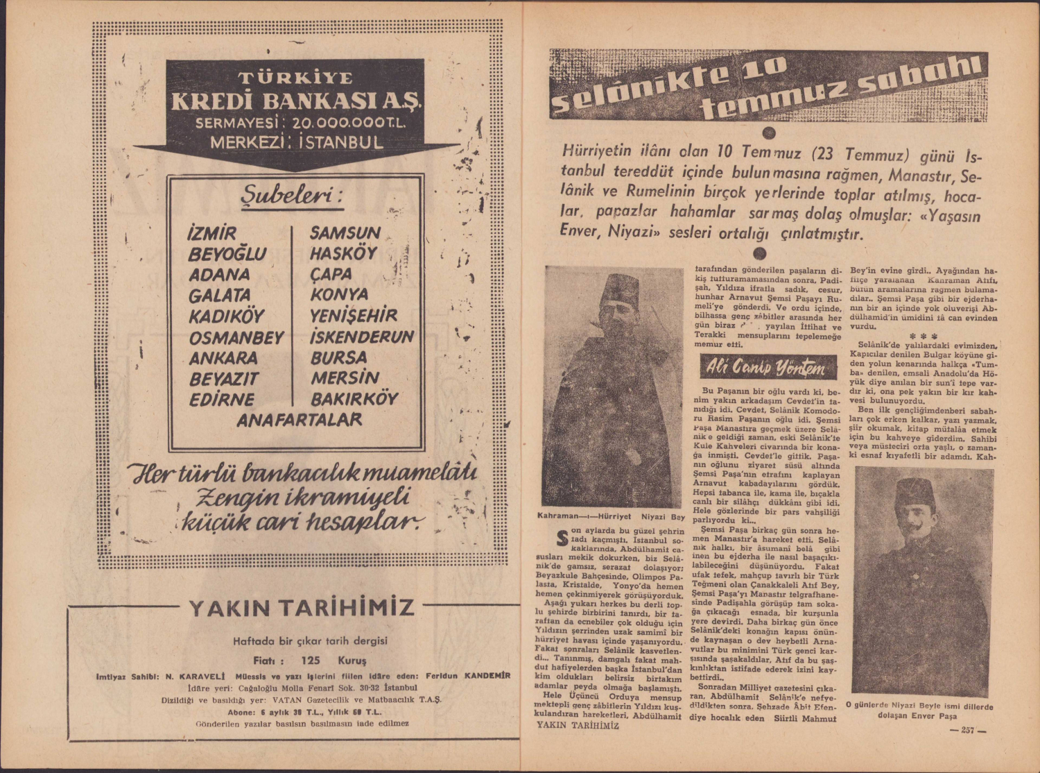Hatıralar, Vesikalar ve Resimlerle Yakın Tarihimiz - Birinci Meşrutiyetten Günümüze Kadar, 2.cilt 22.sayı, 1962, Hürriyet kahramanı Niyazi Bey kapaklı, 30 sayfa, 20x28cm