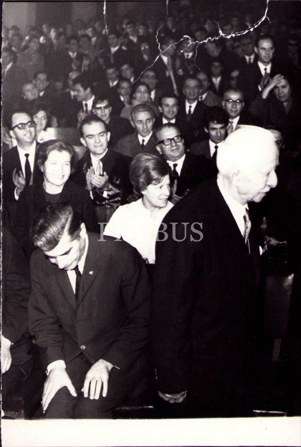 İsmet İnönü D.T.C.F. öğrenci derneği başkanı Celik Konyalı tarafından konuşmaya davet edildiği ve kürsüye çıktığı an, haliyle,11x18 cm