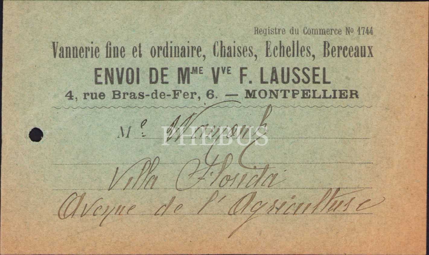 Fransızca kartvizit, Vannerie fine et ordinaire chaises , echelles, berceaux [Güzel ve sıradan sepet sandalyeler, merdivenler, beşikler], 12x6 cm