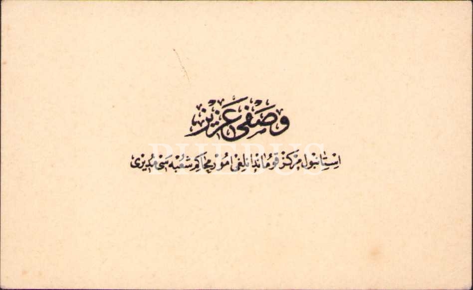 İstanbul Merkez Kumandanlığı Umur-ı Muhakeme Şubesi Müdür Vasfi Aziz, Osmanlıca kartvizit, 7x4 cm
