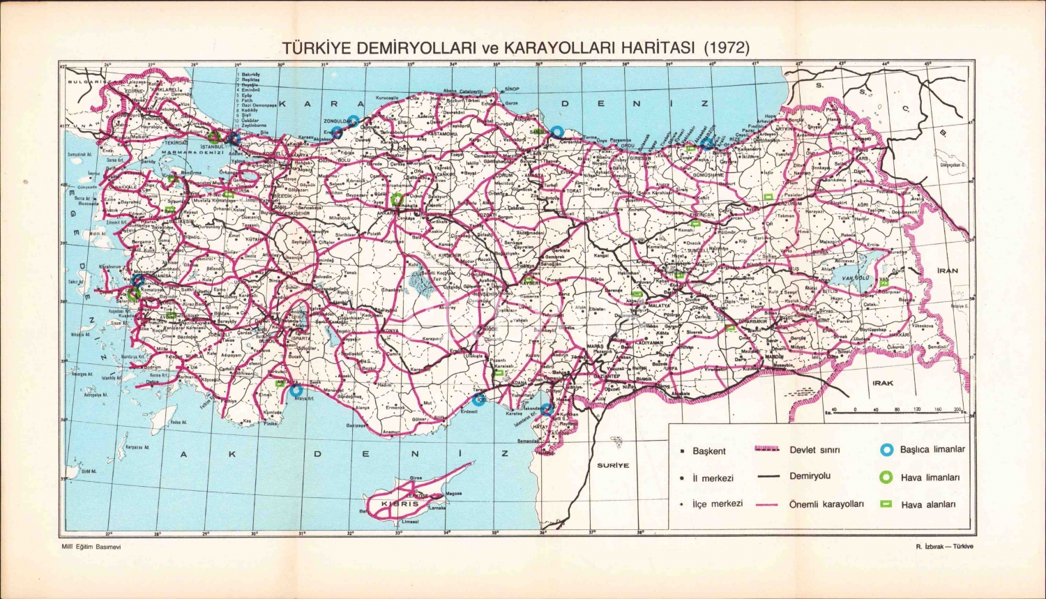 Türkiye Demiryolları ve Karayolları Haritası 1972, 40x22 cm