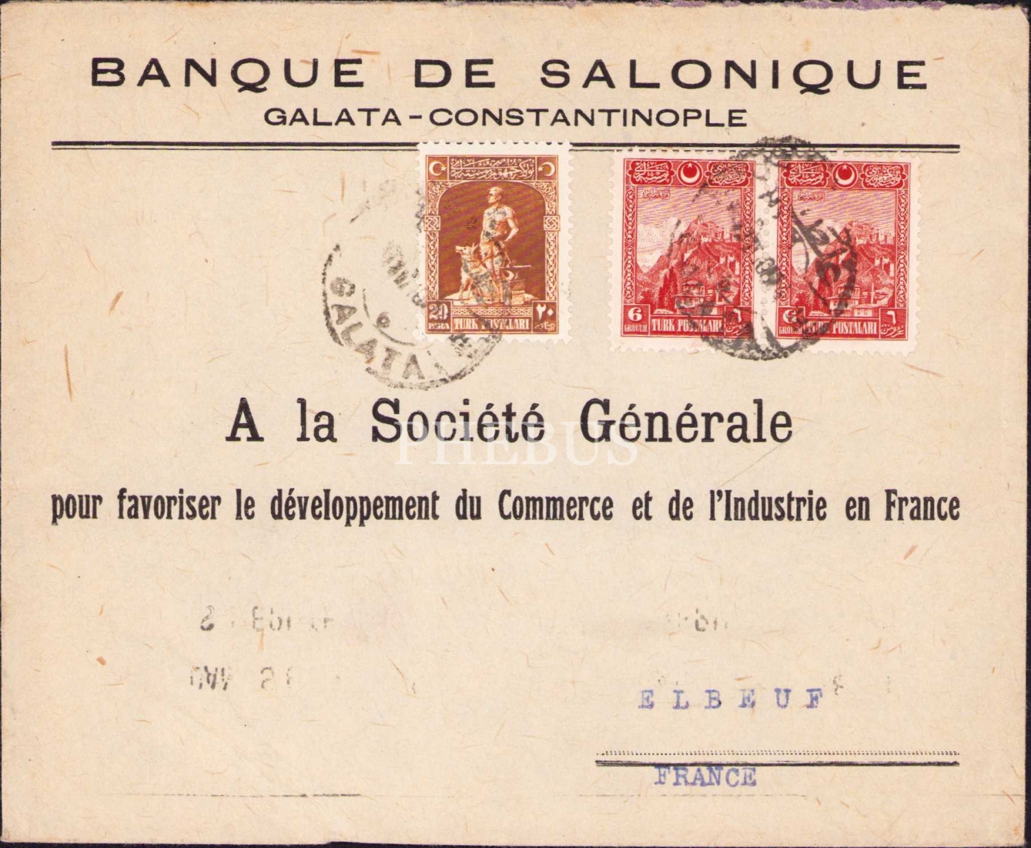 Banque De Selanique [Selanik] antetli zarf, postadan geçmiş