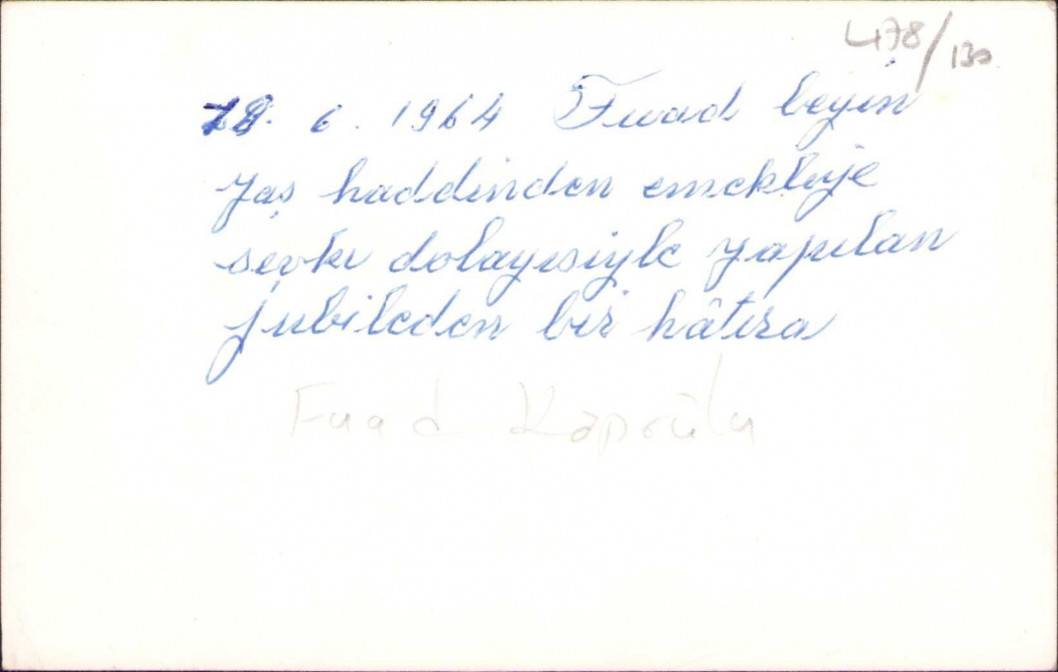 18 Haziran 1964 yılında Fuad [Köprülü] Beyin emekliye sevki dolayısıyla yapılan jübileden bir hatıra, 2 adet