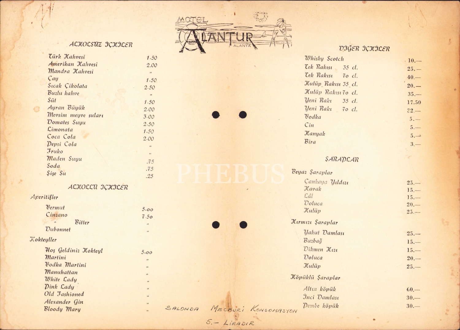 Sait Maden Tasarımı 1964 - Denizyolları Motel Alantur menü, 16x23 cm