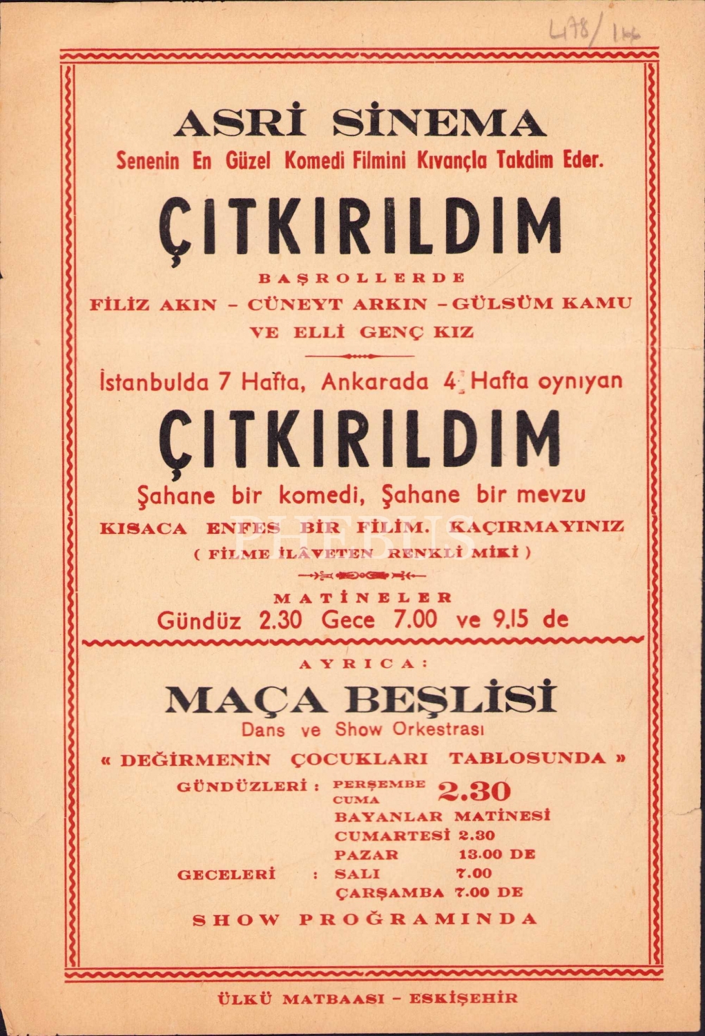 Asri Sinema film listesi: Çıtkırıldım - Maça Beşlisi, kenarlarında yırtıklar mevcut, 16x25 cm