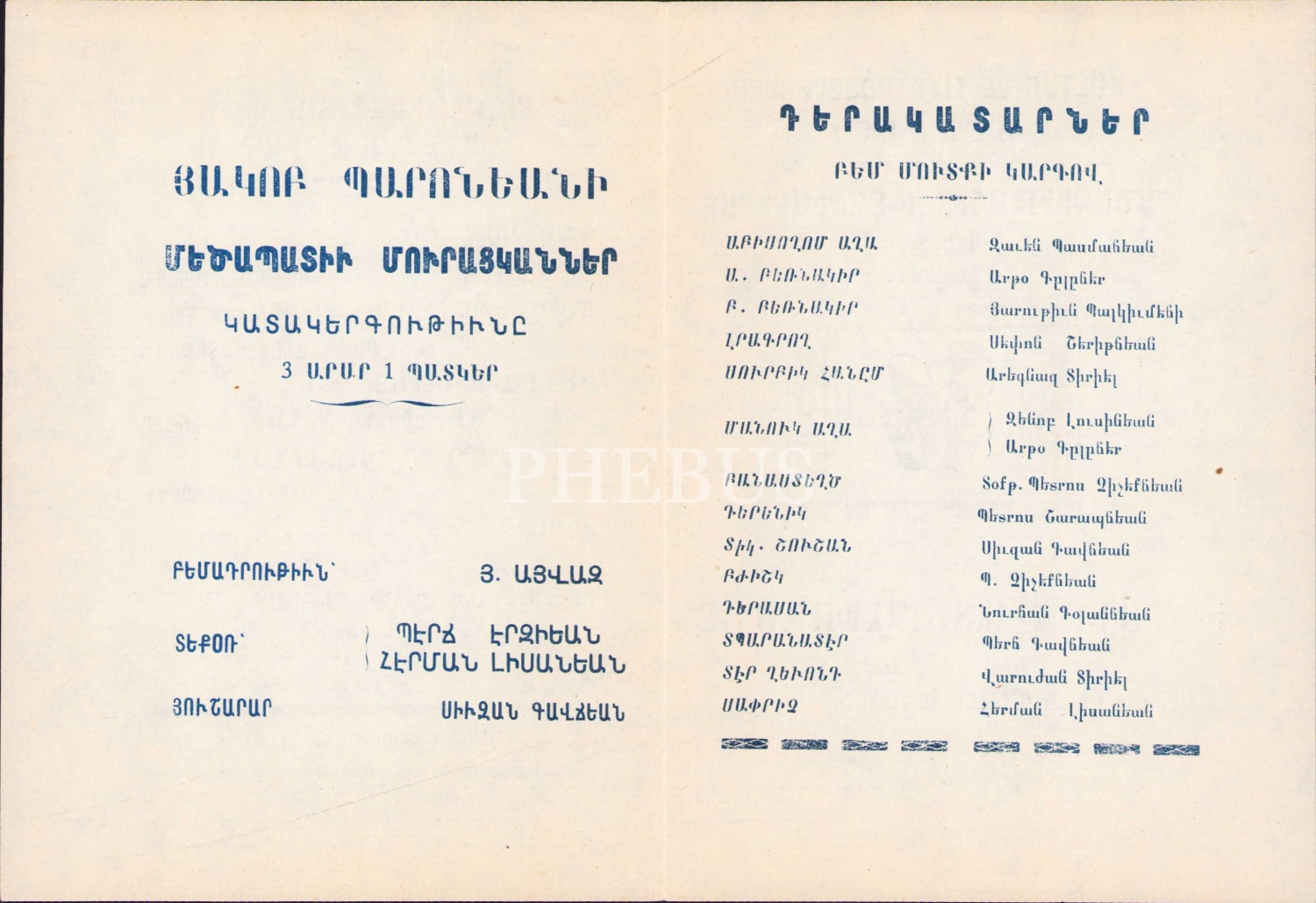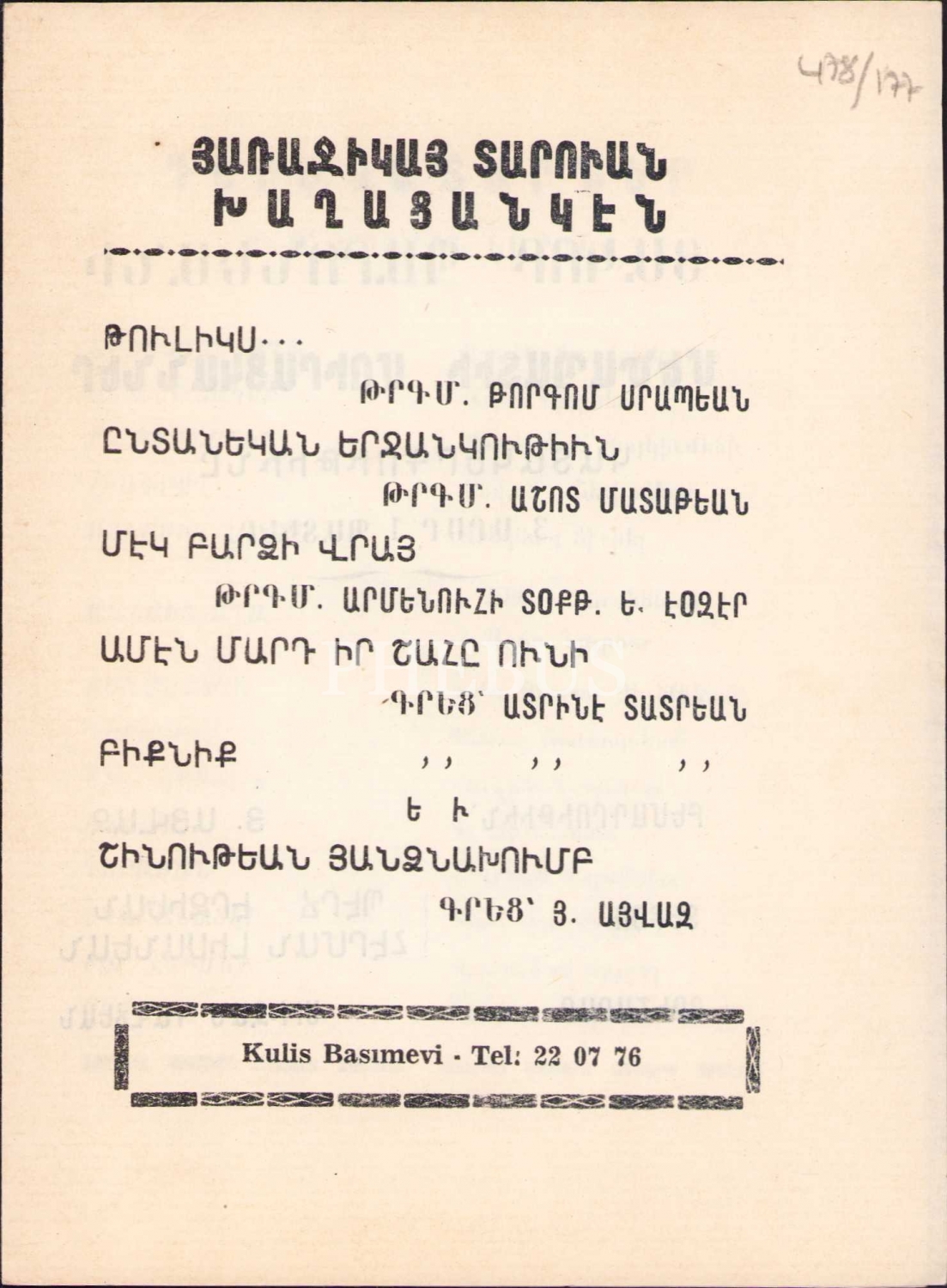 Kültür ve Tiyatroseverler Derneği programı, Ermenice, 13x16 cm