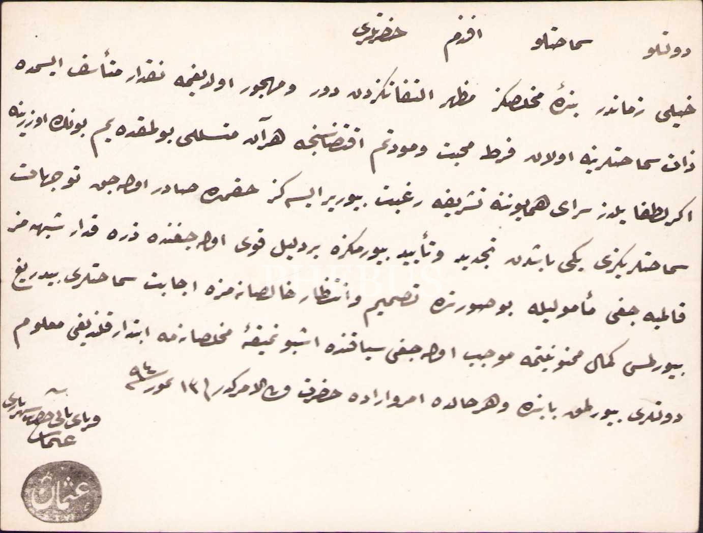 1294 tarihli, Osman damgalı Osmanlıca yazışma evrakı, Yıldız Sarayı belge, 12x8 cm