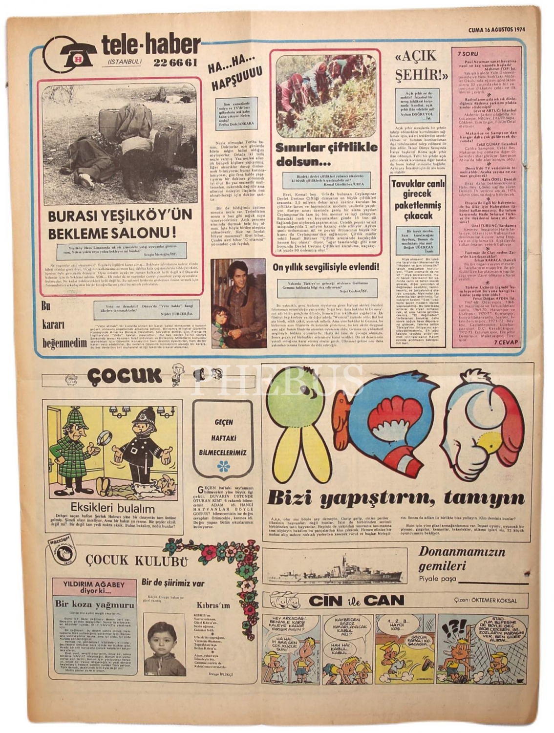 İlerliyoruz manşetli - Türk Yunan Kuvvetlerinin Durumu Nedir?, Hürriyet gazetesi, 16 Ağustos 1974, 4 sayfa, 40x56 cm