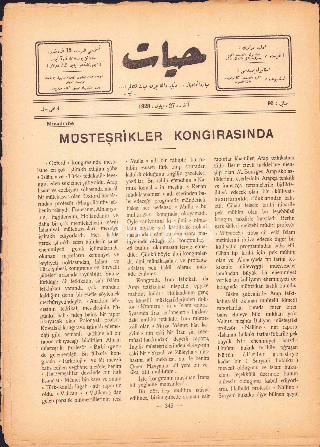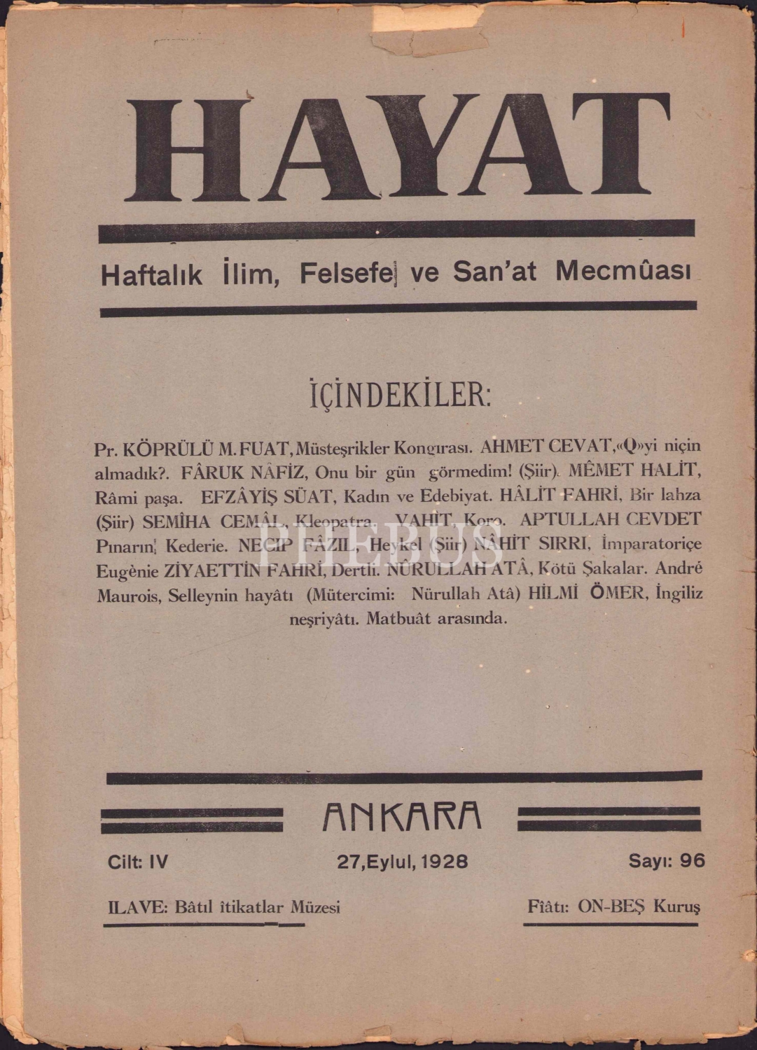 Harf İnkılabından yaklaşık bir ay önce çıkan iki dilde Hayat Mecmuası, 27 Eylül 1928, Ankara, resimli, 20 sayfa, 25x33 cm