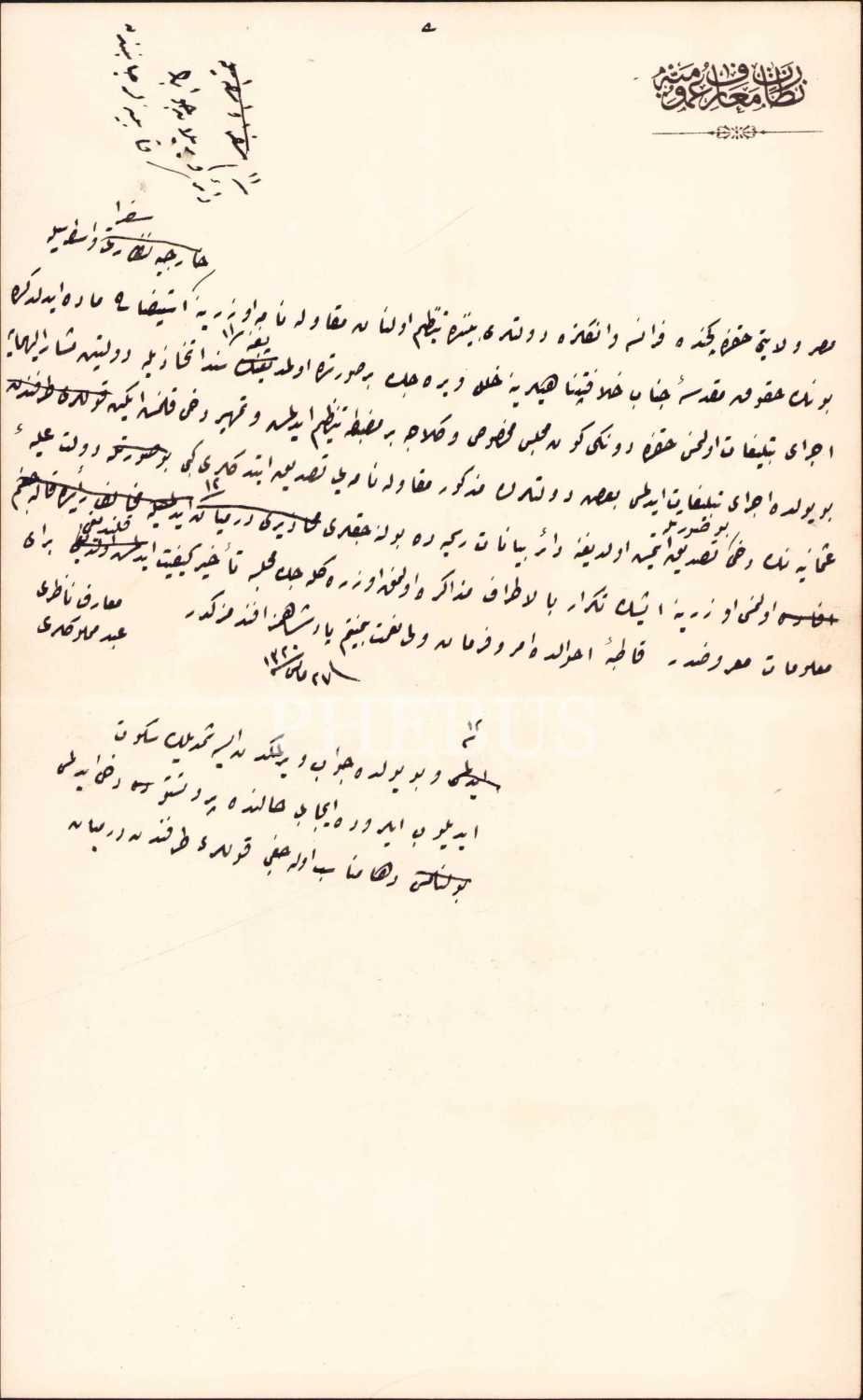 Maarif Nezareti antetli Mısır vilayeti ile ilgili Fransa ve İngiltere'nin imzaladığı mukaveleye dair Osmanlıca evrak, 1320 tarihli, 16x26 cm
