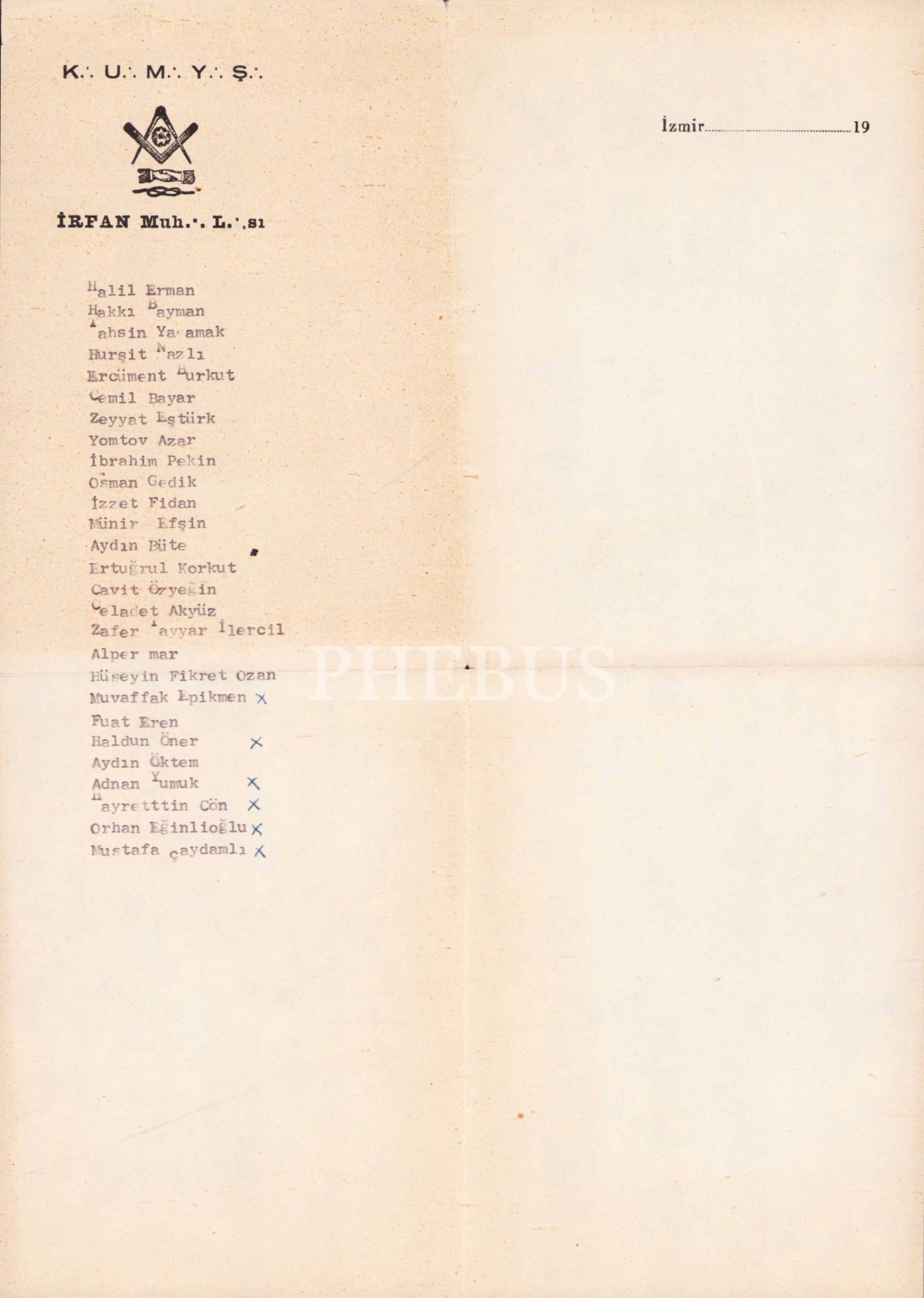 İzmir Mason Locasına ait evraklar 1950-1970 arası, 20 adet