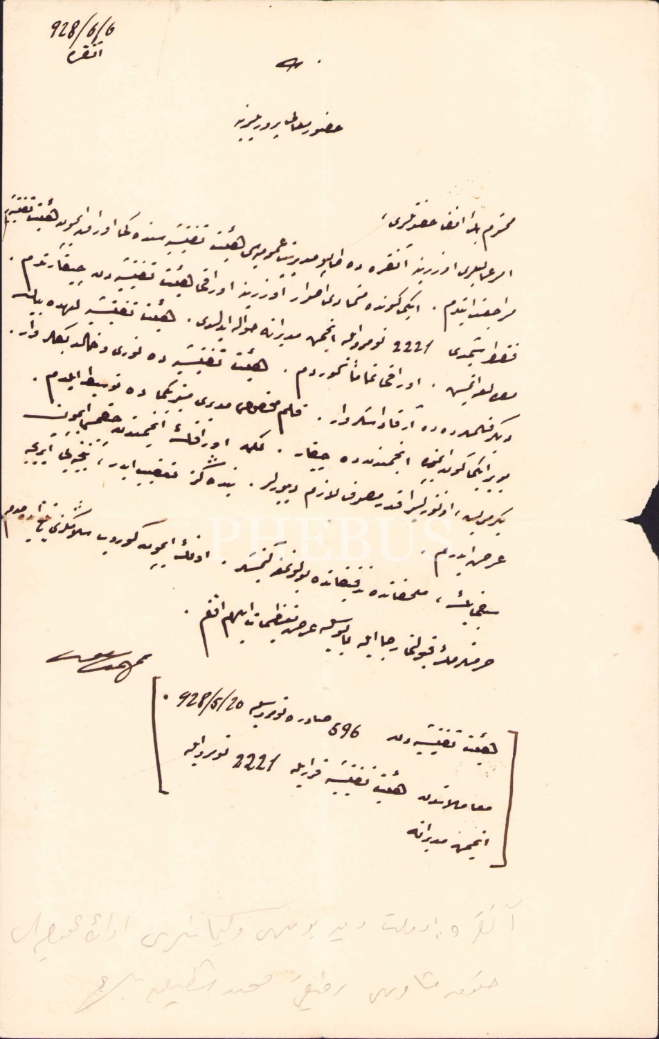 "928 tarihli Ankara tapu müdüriyeti umumiyesi heyeti teftişiyesine müracaat edildiğine dair Osmanlıca evrak, 1928, 16x26 cm