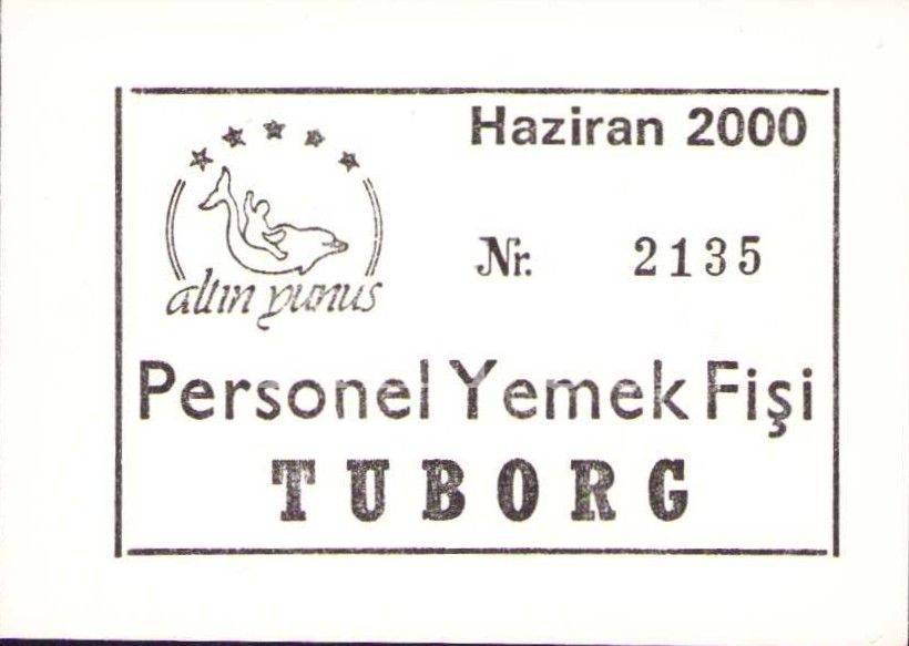 TUBORG personel yemek fişi, Haziran 2000, 6x4 cm