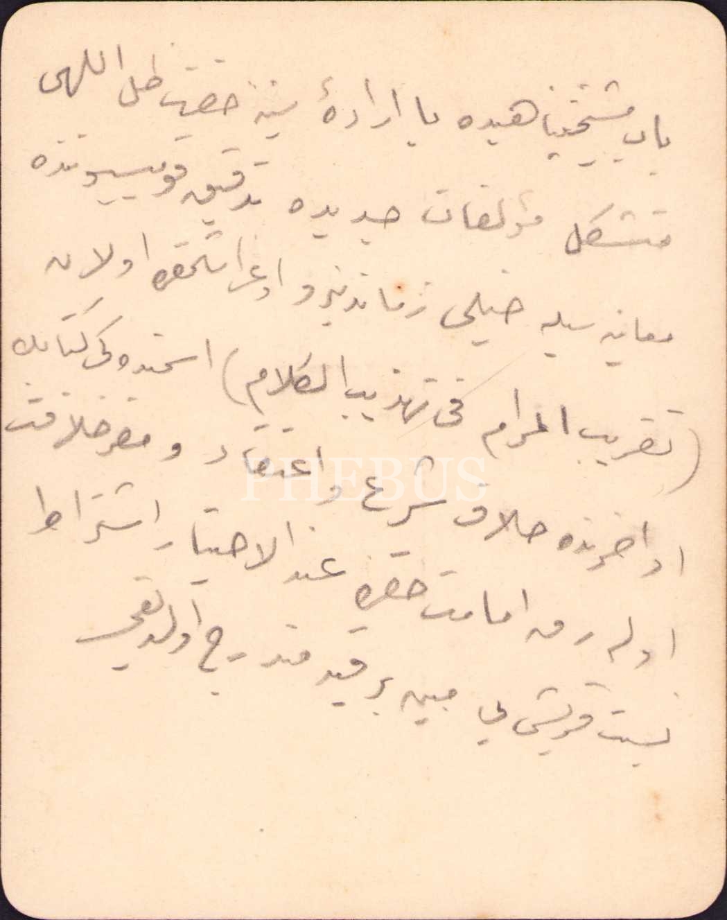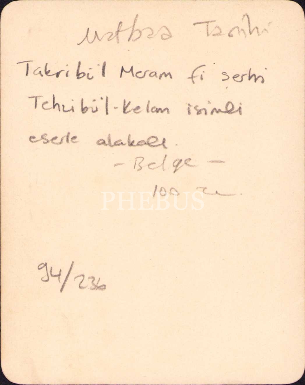 Matbaa Tarihi, Takribül Meram fi şerhi Tehzibü'l Kelam isimli eserle alakalı Osmanlıca belge, 8x10 cm