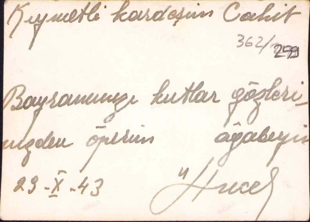 Askeri Lise, arkası bayram tebriği ithaflı, 1943, 8x6 cm