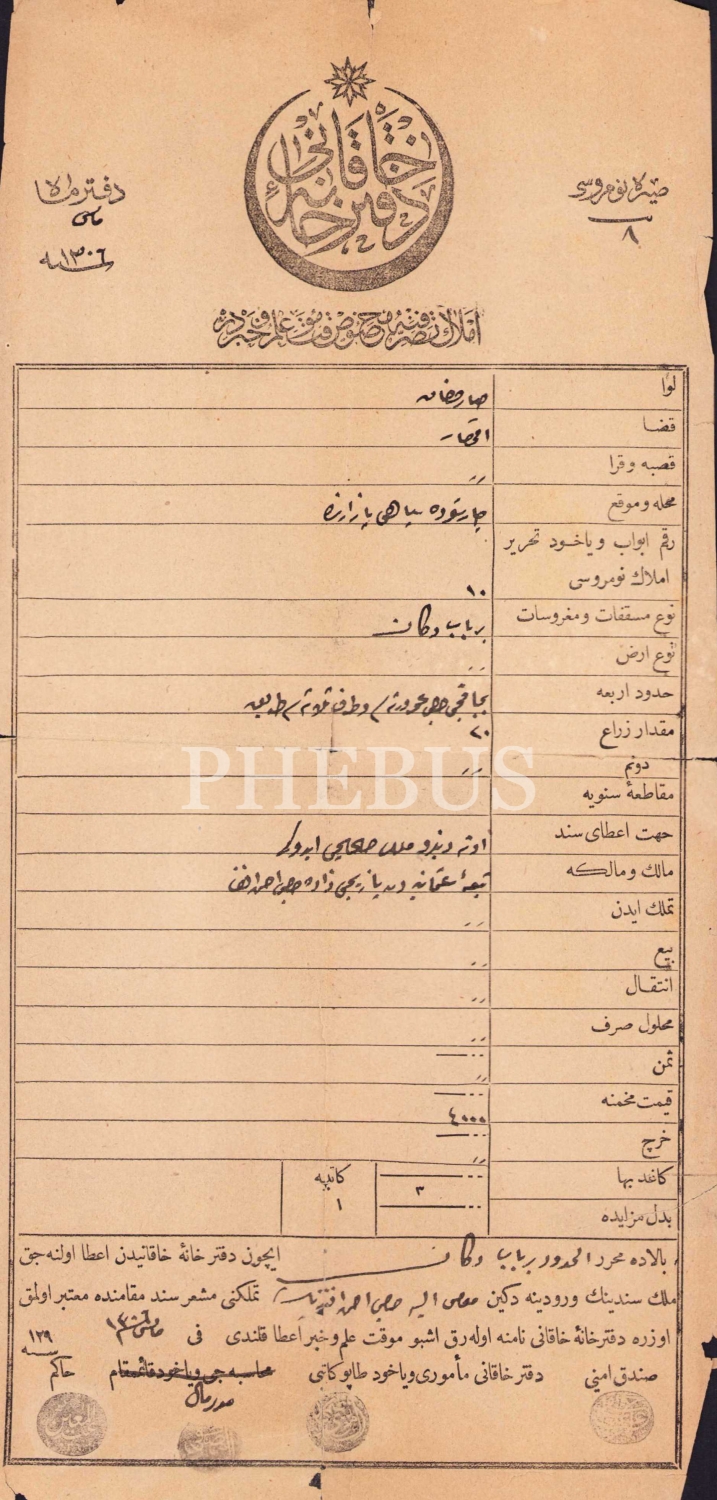 Osmanlıca tapu, Saruhan, Akhisar, 1306 tarihli, haliyle, 17x32 cm