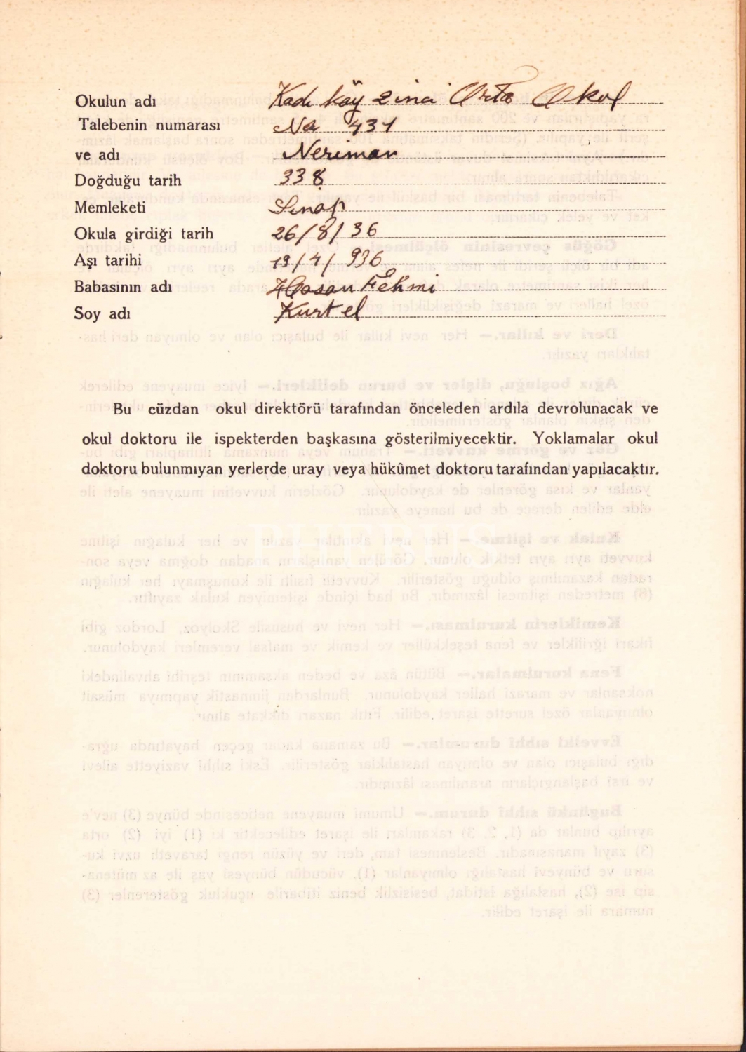 TC Kültür Bakanlığı Orta Tedrisat Dayrası Sağlık Cüzdanı, İstanbul Devlet Basımevi, 1936, 16x22 cm