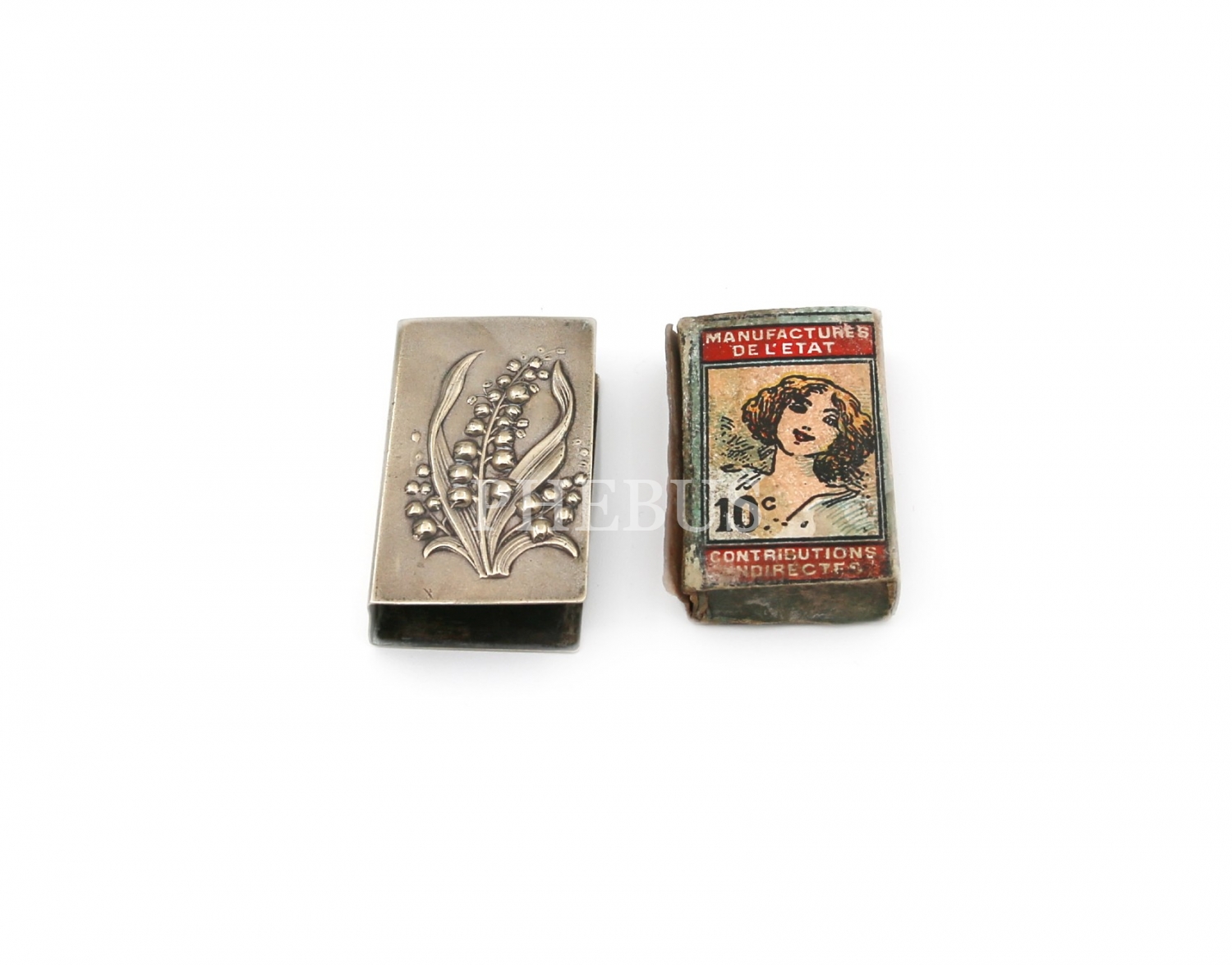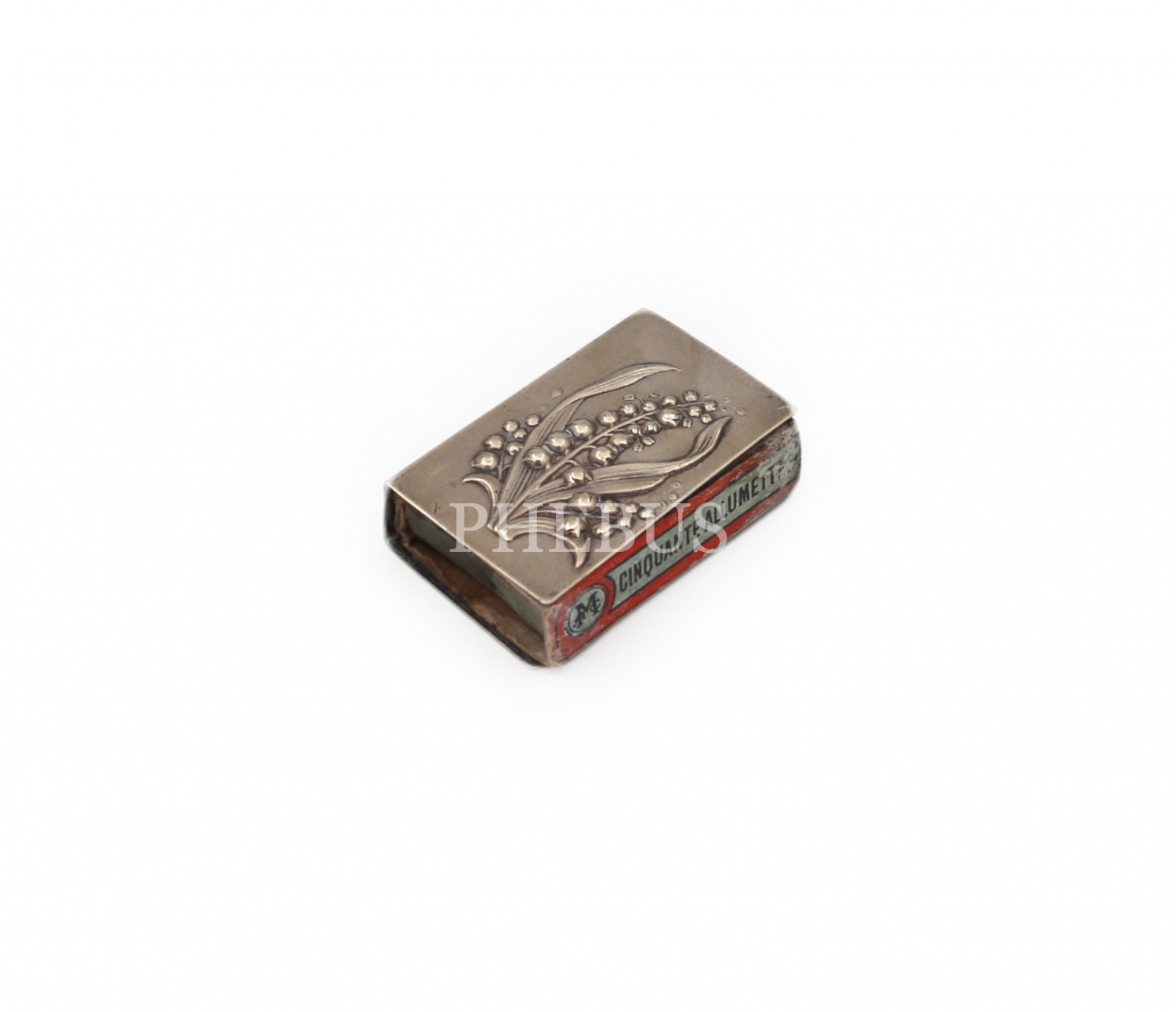 Kabartma çiçek desenli teneke kibritlik, içi boş, 3x5x1 cm