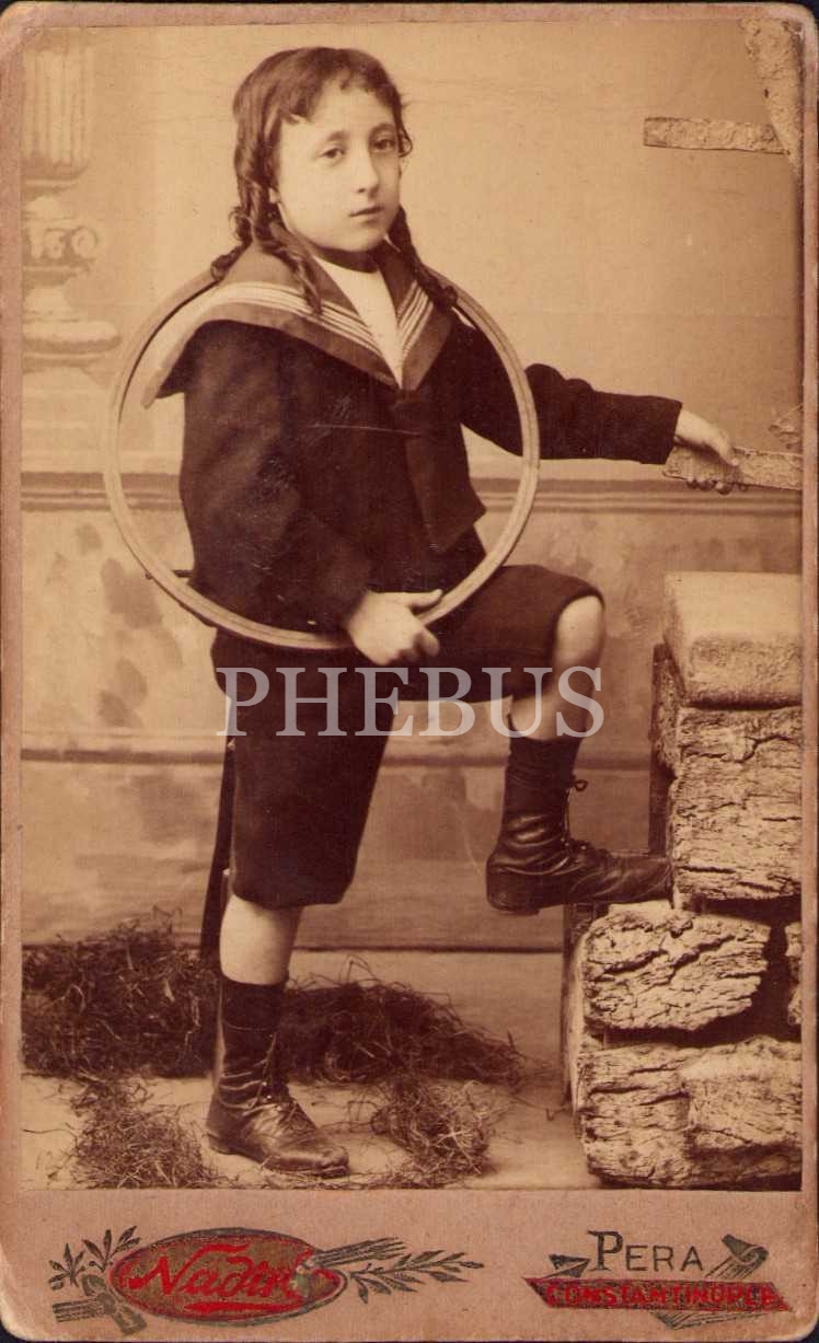Photo Nadir Pera Constantinople, oyuncaklı çocuk kabin fotoğrafı, 6x10 cm