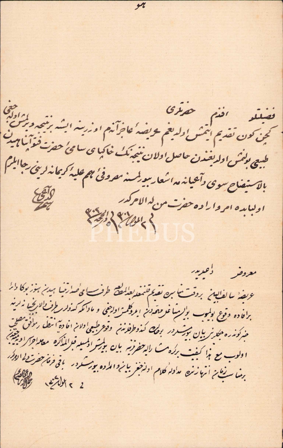 Şeyhülislam Cemaleddin Efendi'nin el yazısı ile takdim kılınan bir arıza ile ilgili 1302 tarihli Osmanlıca yazışma evrakı, 12x20 cm