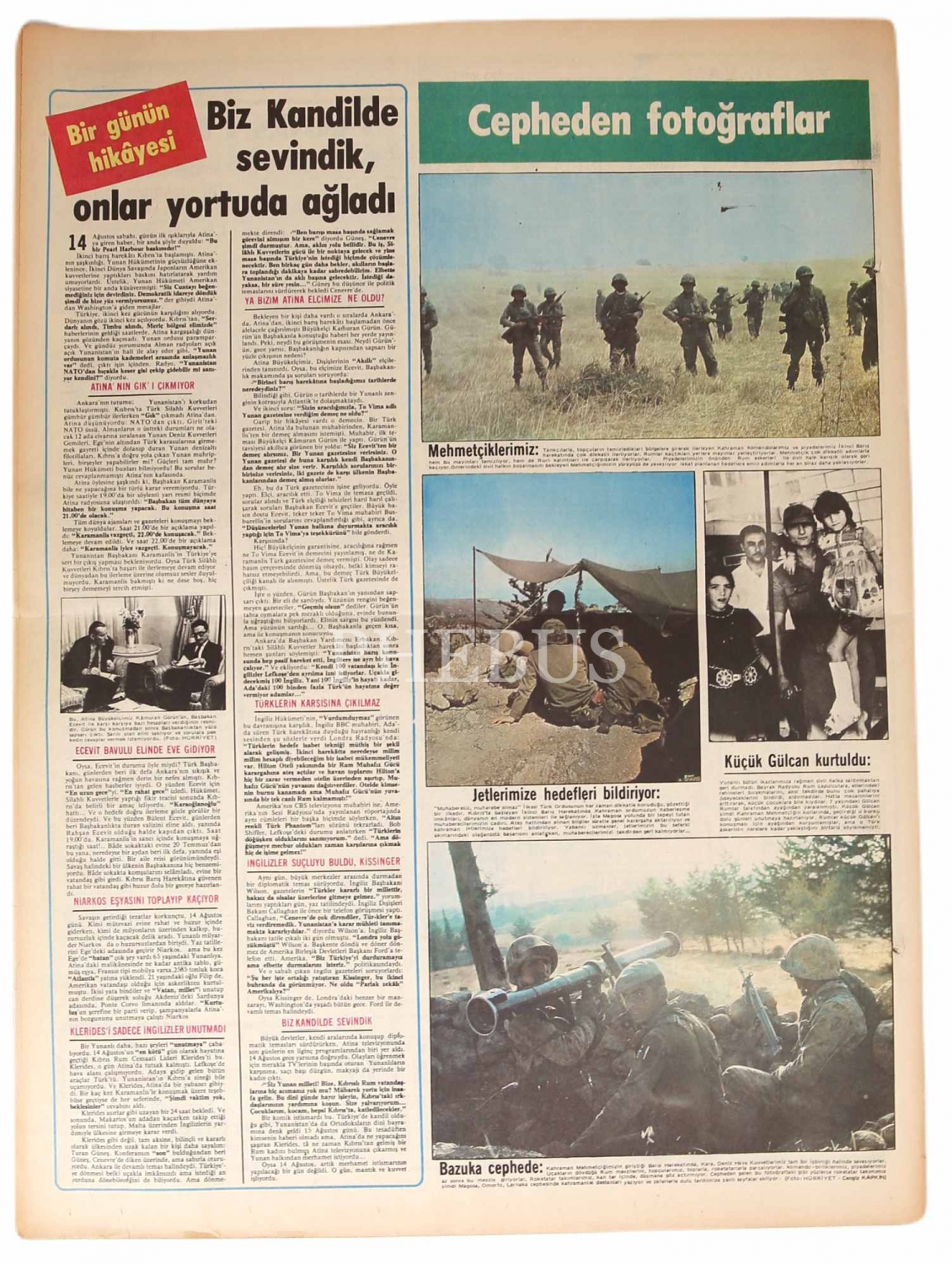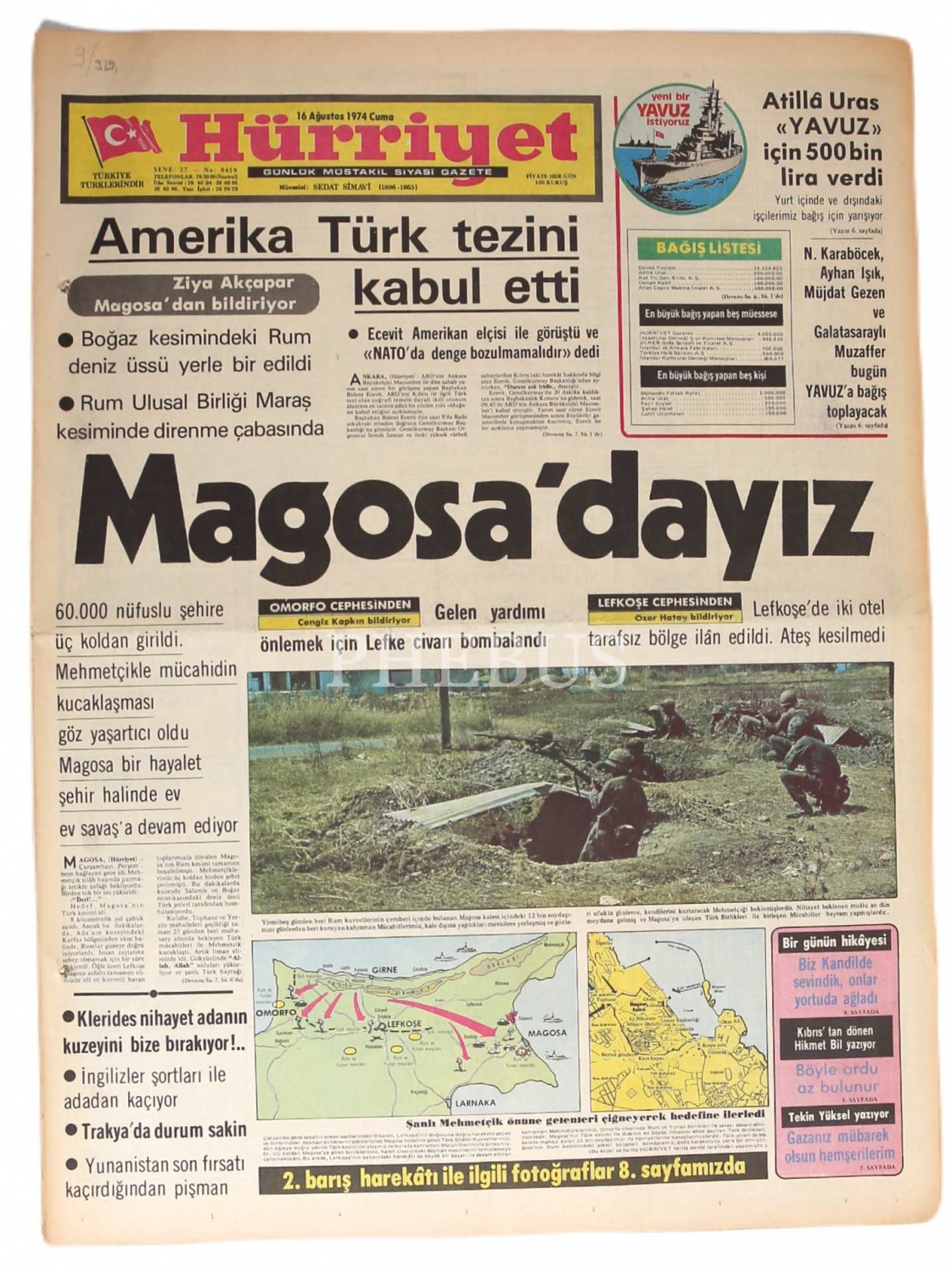 Magosa'dayız manşetli, Hürriyet gazetesi, 16 Ağustos 1974, 8 sayfa, 42x60 cm