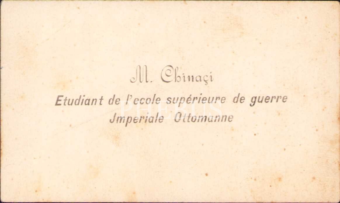 M. Cbinaçi, Fransızca kartvizit, arkası Osmanlıca ithaflı, 9x5 cm