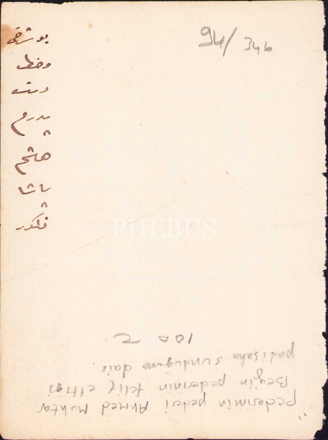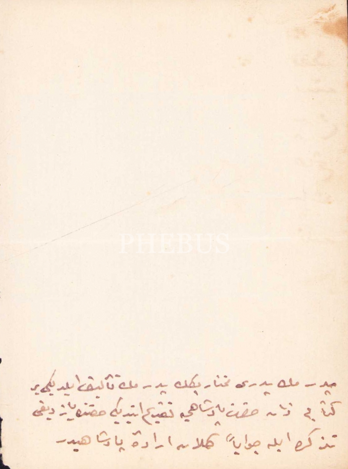 Pederimin pederi Ahmed Muhtar Bey'in pederinin telif ettiği Padişaha sunduğuna dair Osmanlıca evrak, 10x14 cm