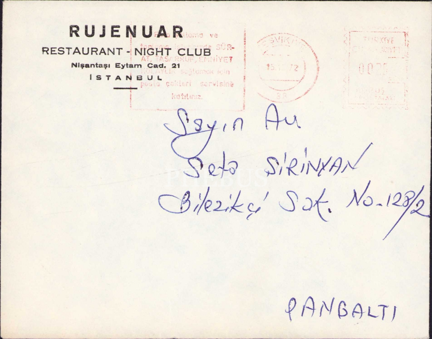 Ruzejuar Restaurant - Night Club antetli zarf ve mektup