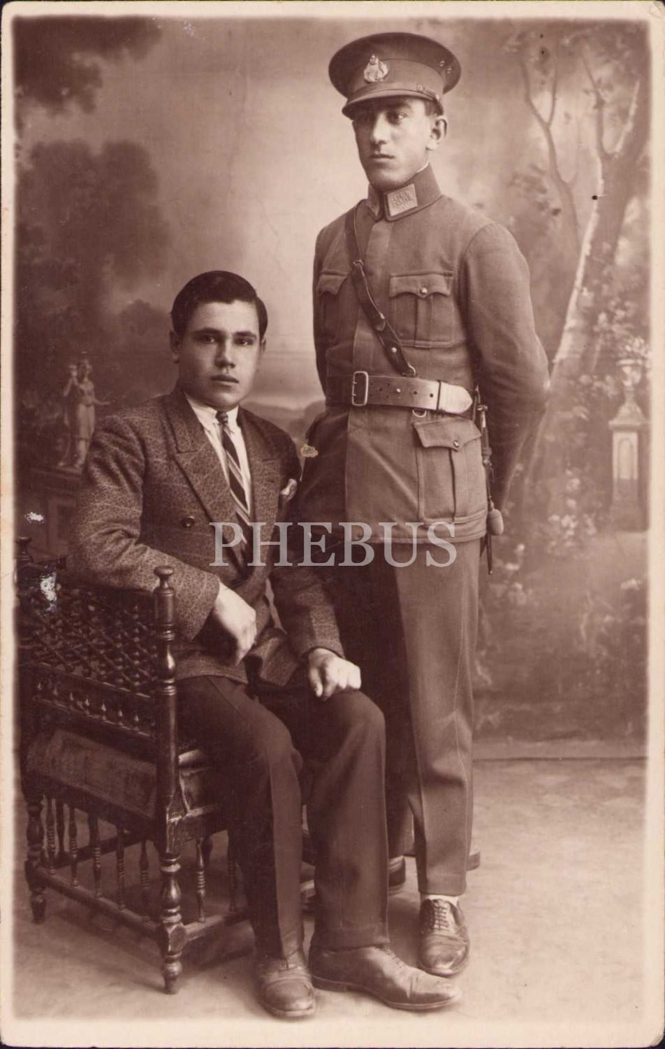 Erken dönem üniformalı, sivil hatıra fotoğrafı, Osmanlıca - Fransızca Yeni Dünya Fotoğrafhanesi damgalı