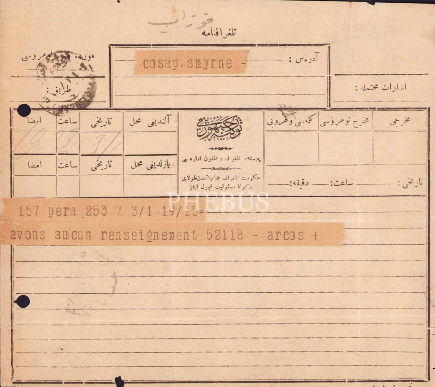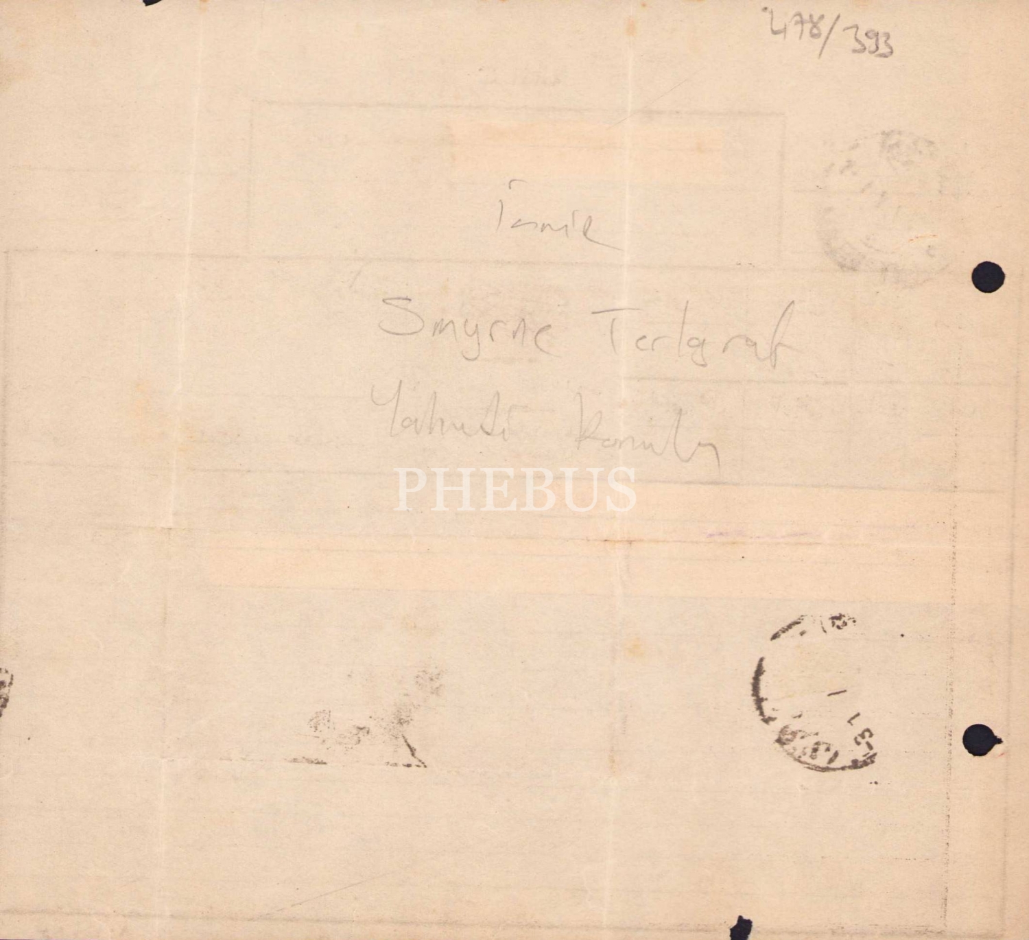 İzmir [Smyrne] telgraf, Yahudi konulu, 18x16 cm