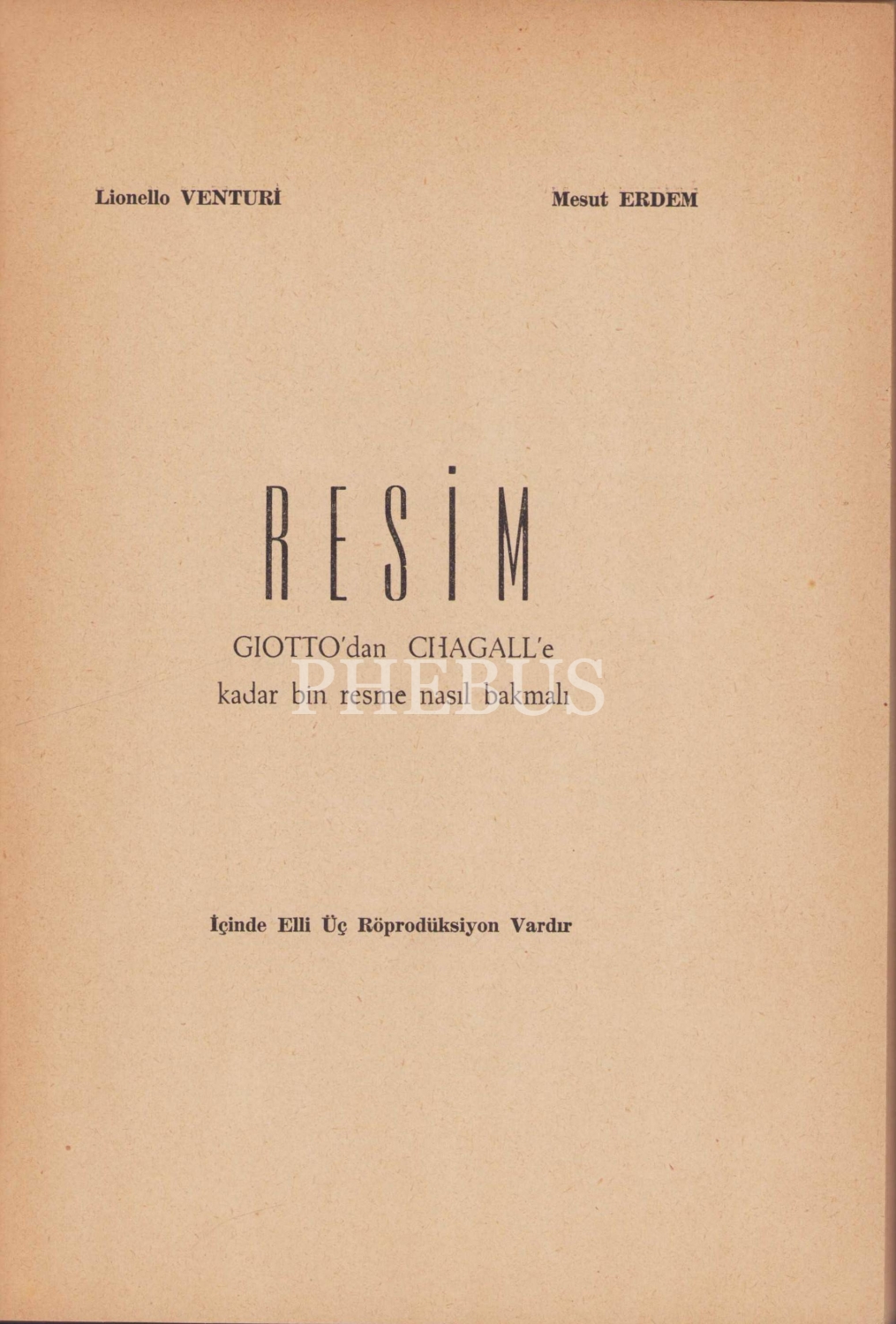 Resim - Giotto'dan Chagall'e kadar bin resme nasıl bakmalı, Lionello Venturi - Mesut Erdem, 1954, 1000 Adet Basılmıştır, İçinde 53 Reprodüksiyon Vardır, 239 sayfa, 17x24 cm
