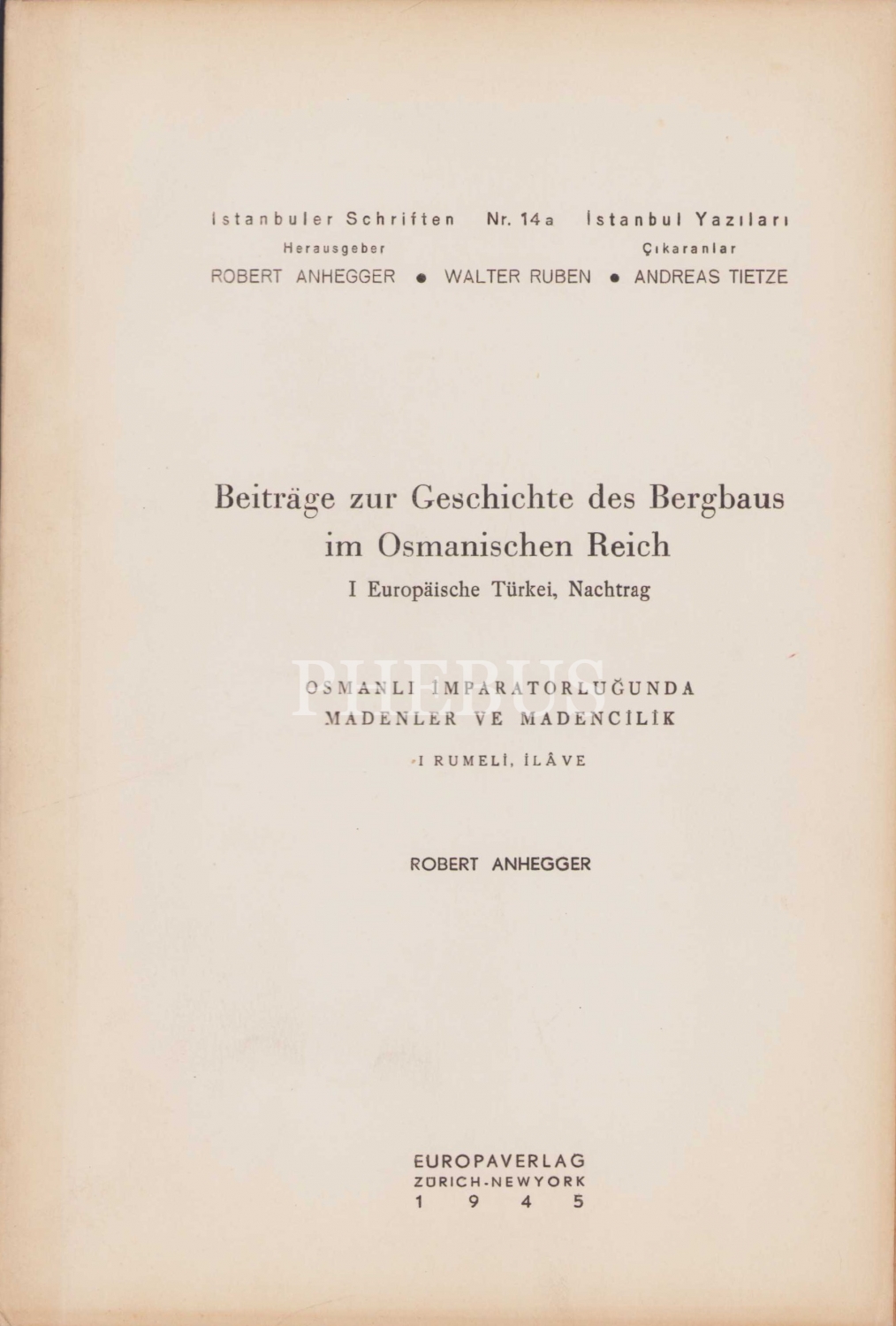 Amanca ve Türkçe: İstabul Yazıları - Osmanlı İmparatorluğu'nda Madenler ve Madencilik, Europaverlag Zürich - New York 1945, 35 sayfa, 15x23 cm