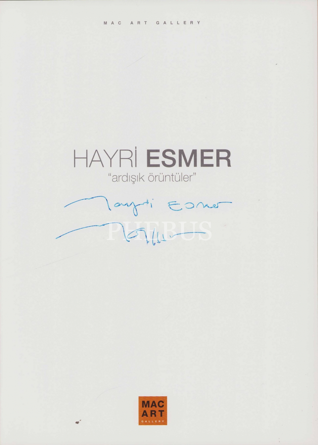 Hayri Esmer - Ardışık Örüntüler, Mac Art Gallery, (İmzalı). Bu katalog Hayri Esmer'in 06 Kasım - 30 Kasım 2007 tarihleri arasında İstanbul Mac Art Gallery'de düzenlenen sergisi nedeniyle 500 adet basılmıştır. 22x30 cm