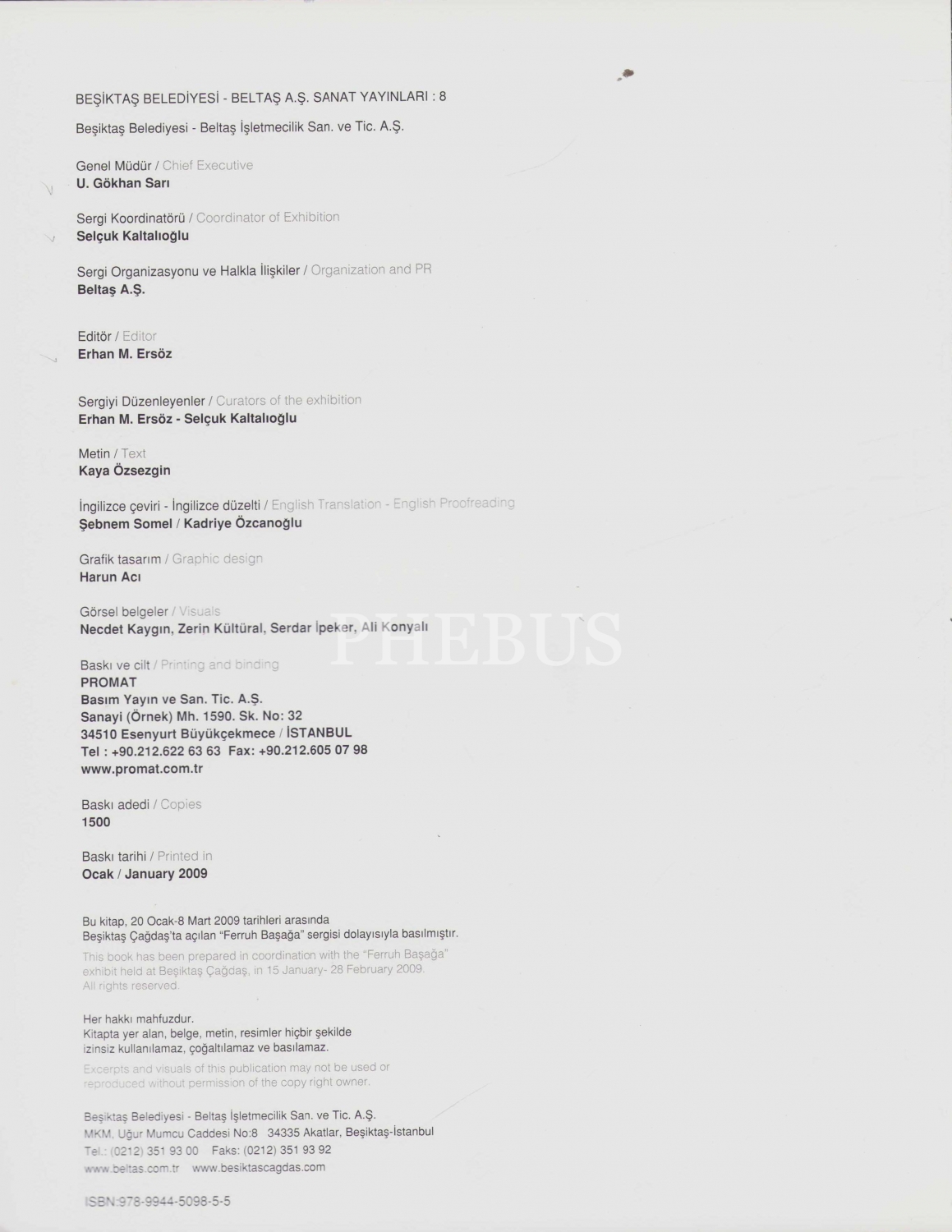 Başağa (Ferruh Başağa / Sanatı ve Yaşamı), Kaya Özsezgin, Beşiktaş Belediyesi - BELTAŞ A.Ş. Sanat Yayınları (1500 Adet), Ocak 2009, 445 sayfa, 30x24 cm