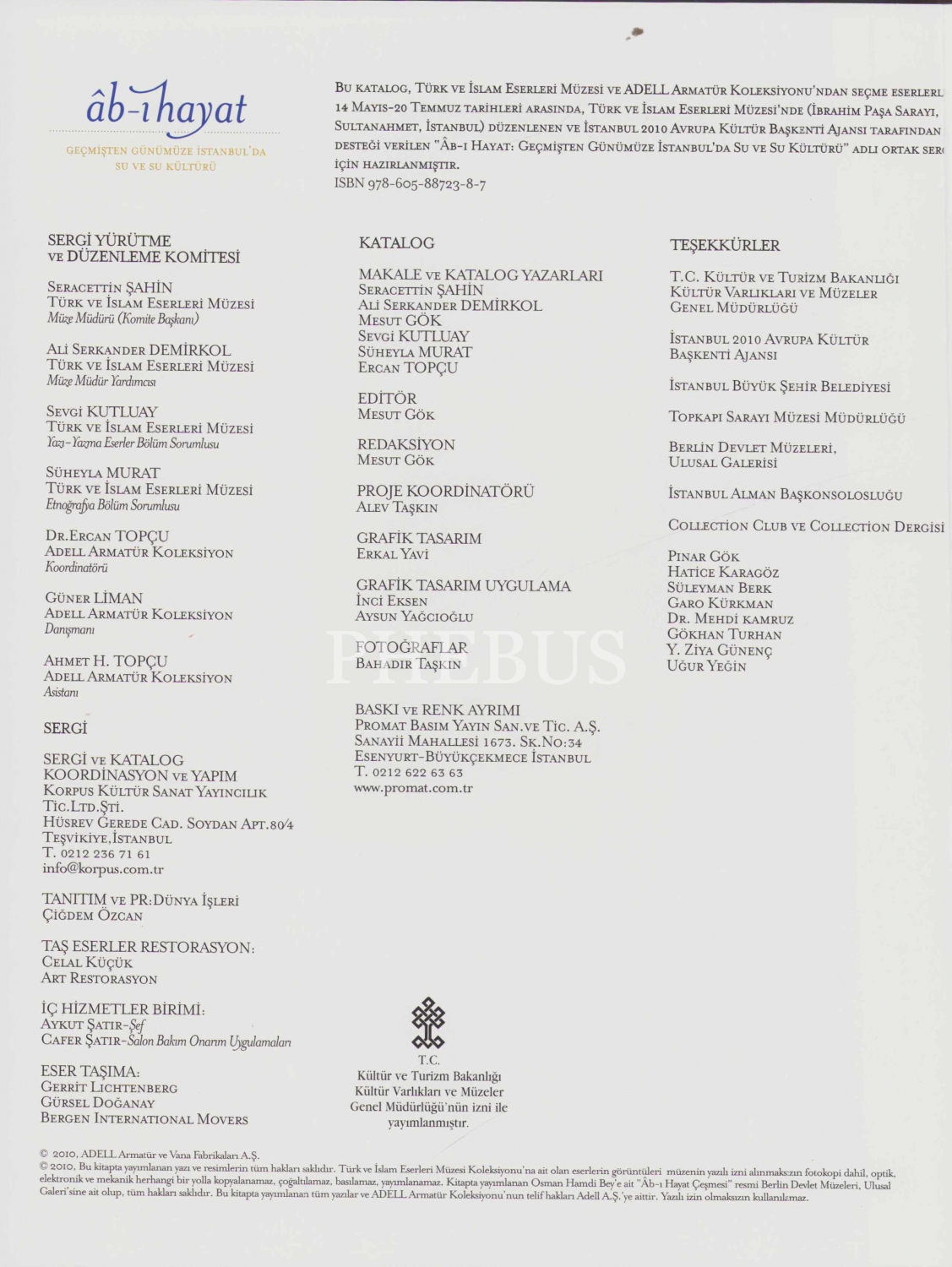 Ab-ı Hayat - Geçmişten Günümüze İstanbul'da Su ve Su Kültürü (Sergi Kataloğu), Editör: Mesut Gök, 2010, 247 sayfa, 23x29 cm
