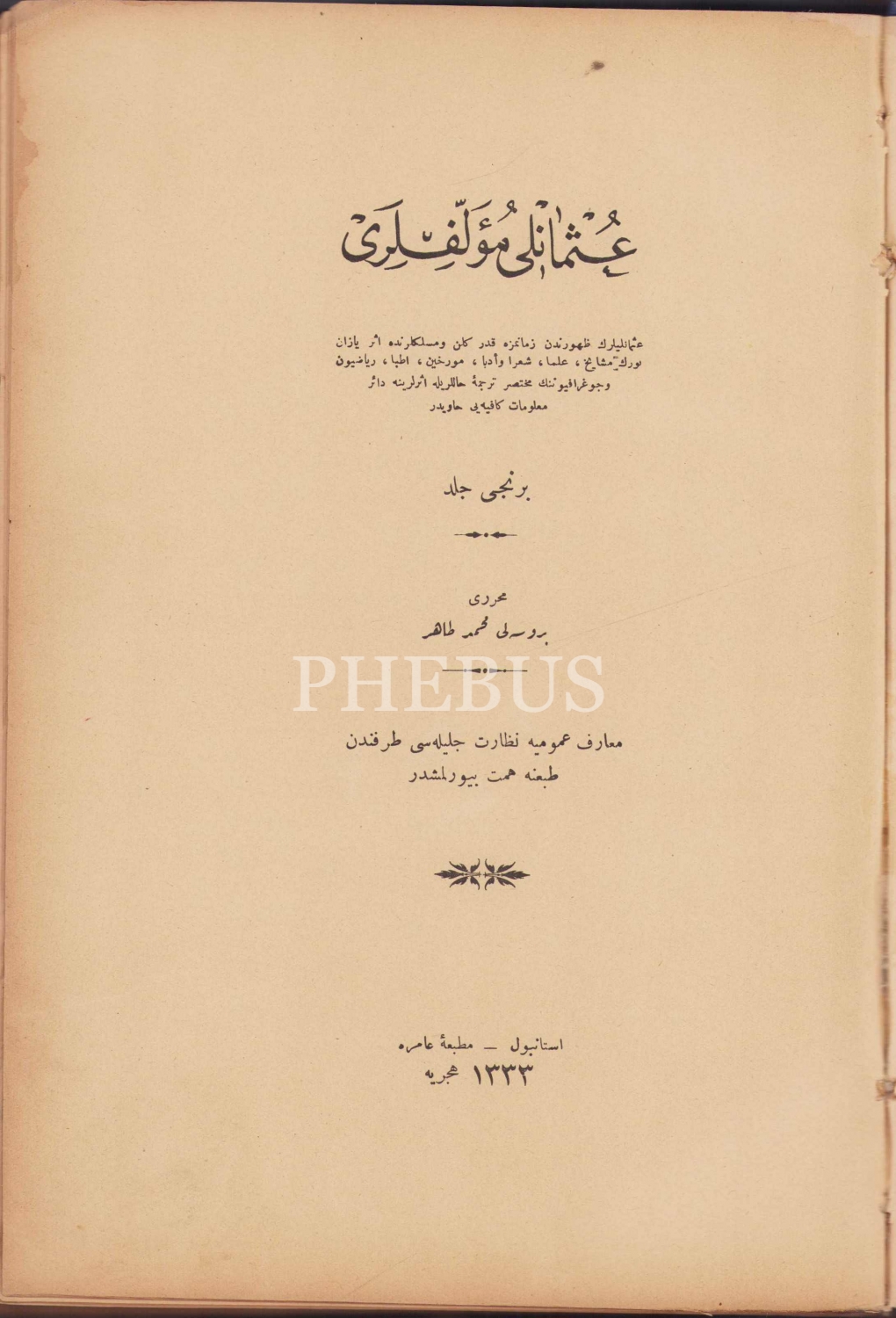 Osmanlıca Osmanlı Müellifleri 1. cilt, Bursalı Mehmed Tahir, İstanbul Matbaa-ı Amire 1333, 408 sayfa, 25x18 cm