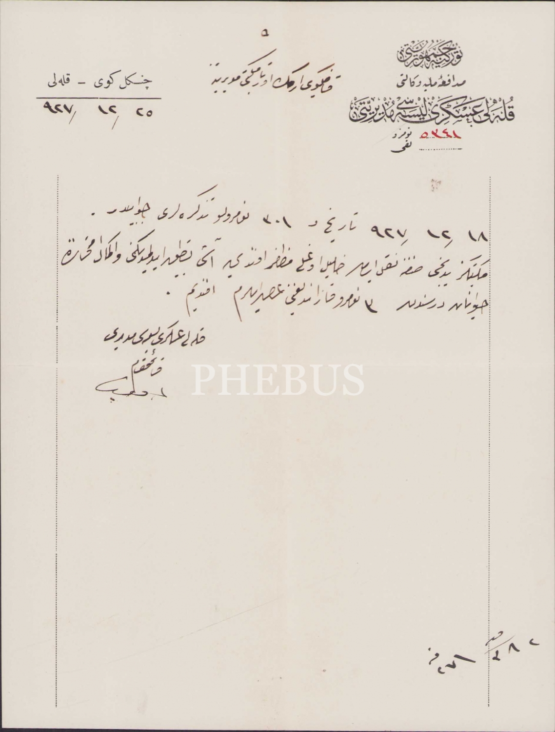 Osmanlıca TC Kuleli Askeri Lisesi Müdüriyeti antetli 1927 tarihli doküman, 15x20 cm
