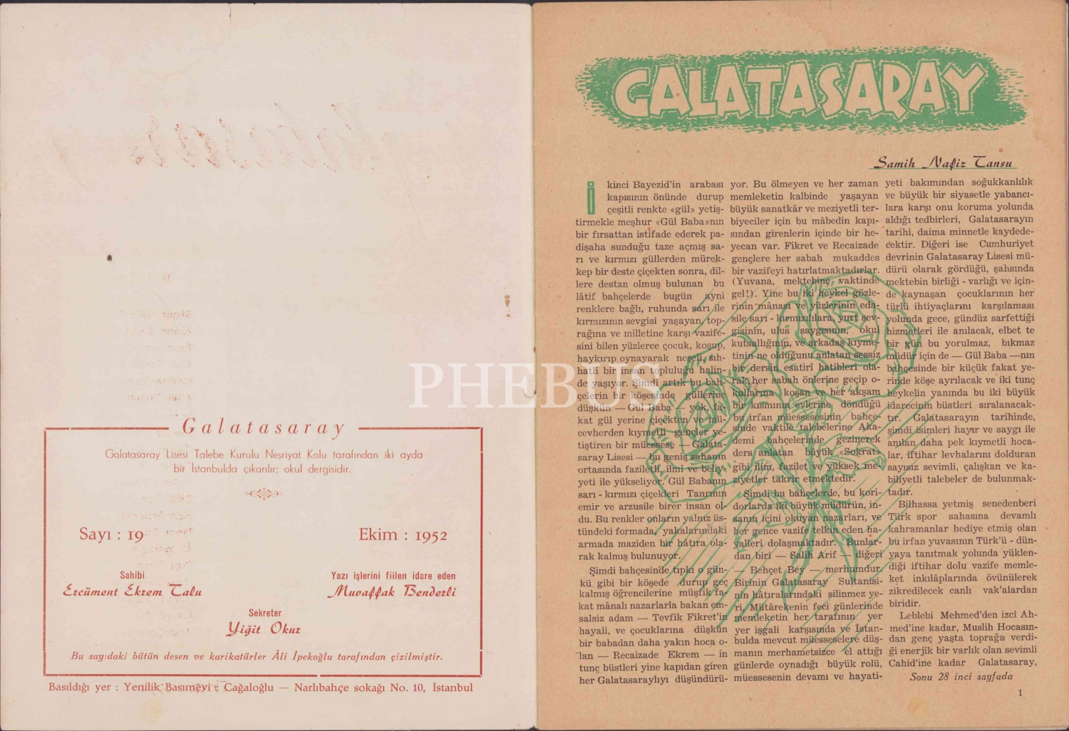 Galatasaray Okul Dergisi Sayı 19, Ekim 1952, Sahibi Ercüment Ekrem Talu, 28 sayfa, 19x26 cm
