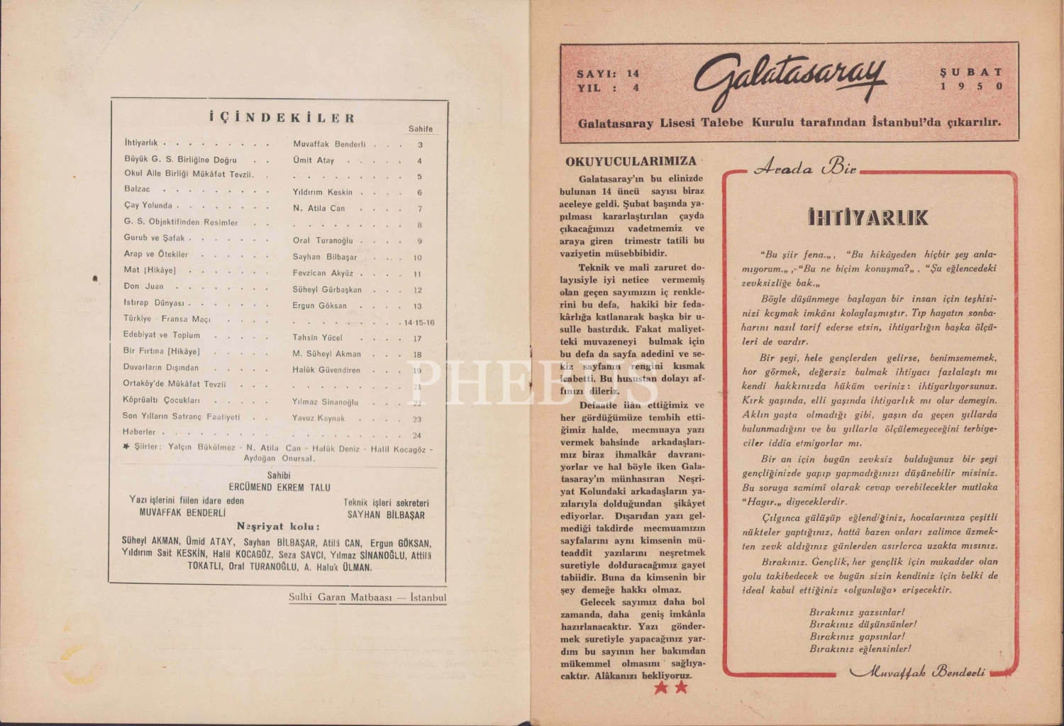 Galatasaray Okul Dergisi Sayı 14, Şubat 1950, Sahibi Ercüment Ekrem Talu, 26 sayfa, 19x26 cm
