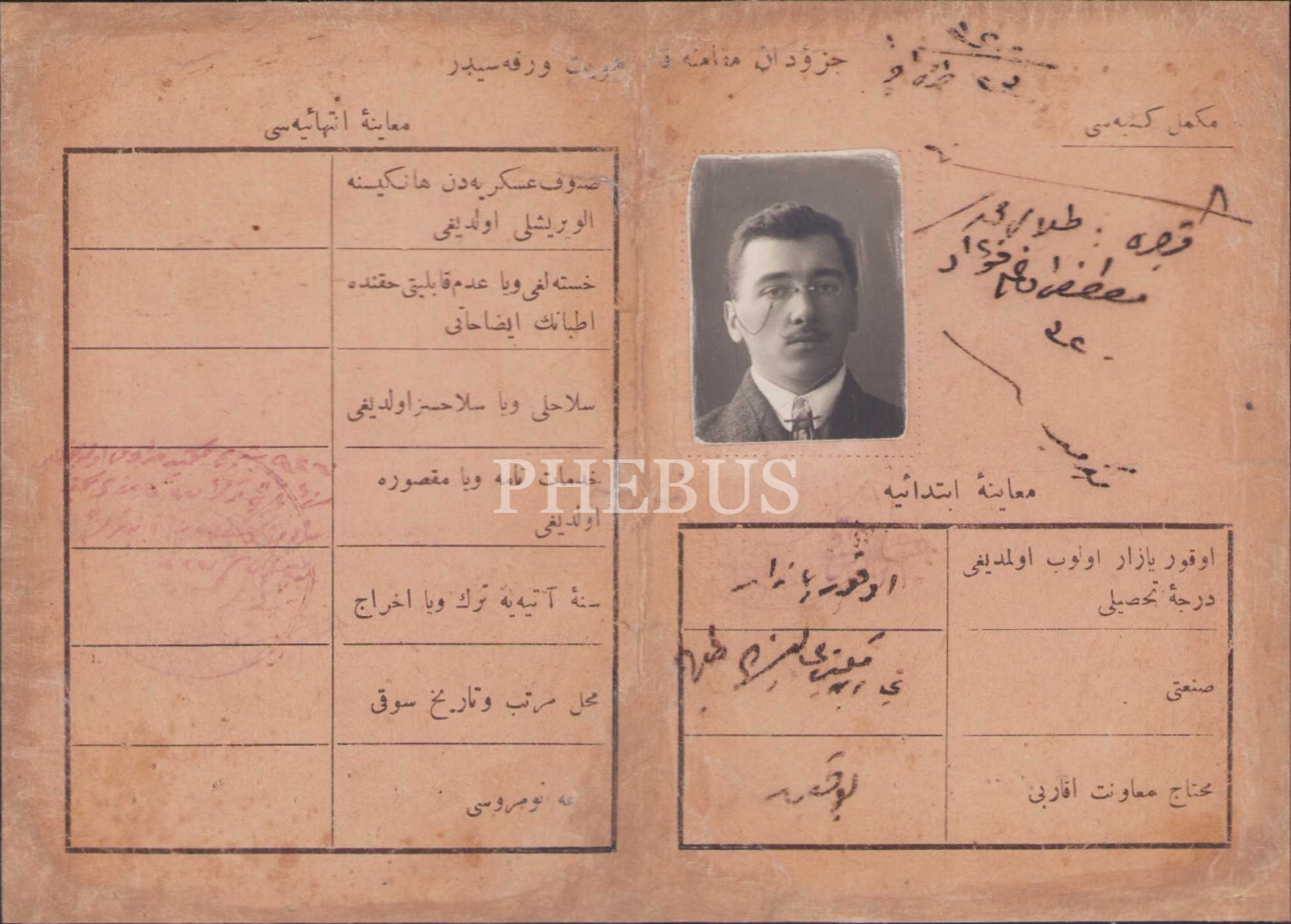Osmanlıca hüviyet varakası, 1927, tamirli, 15x11 cm