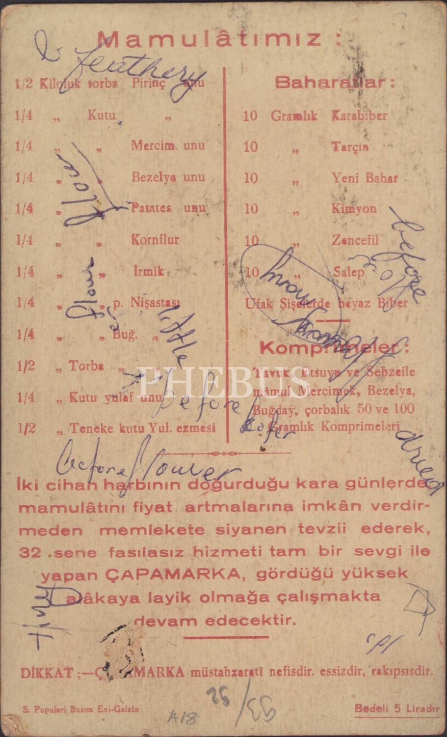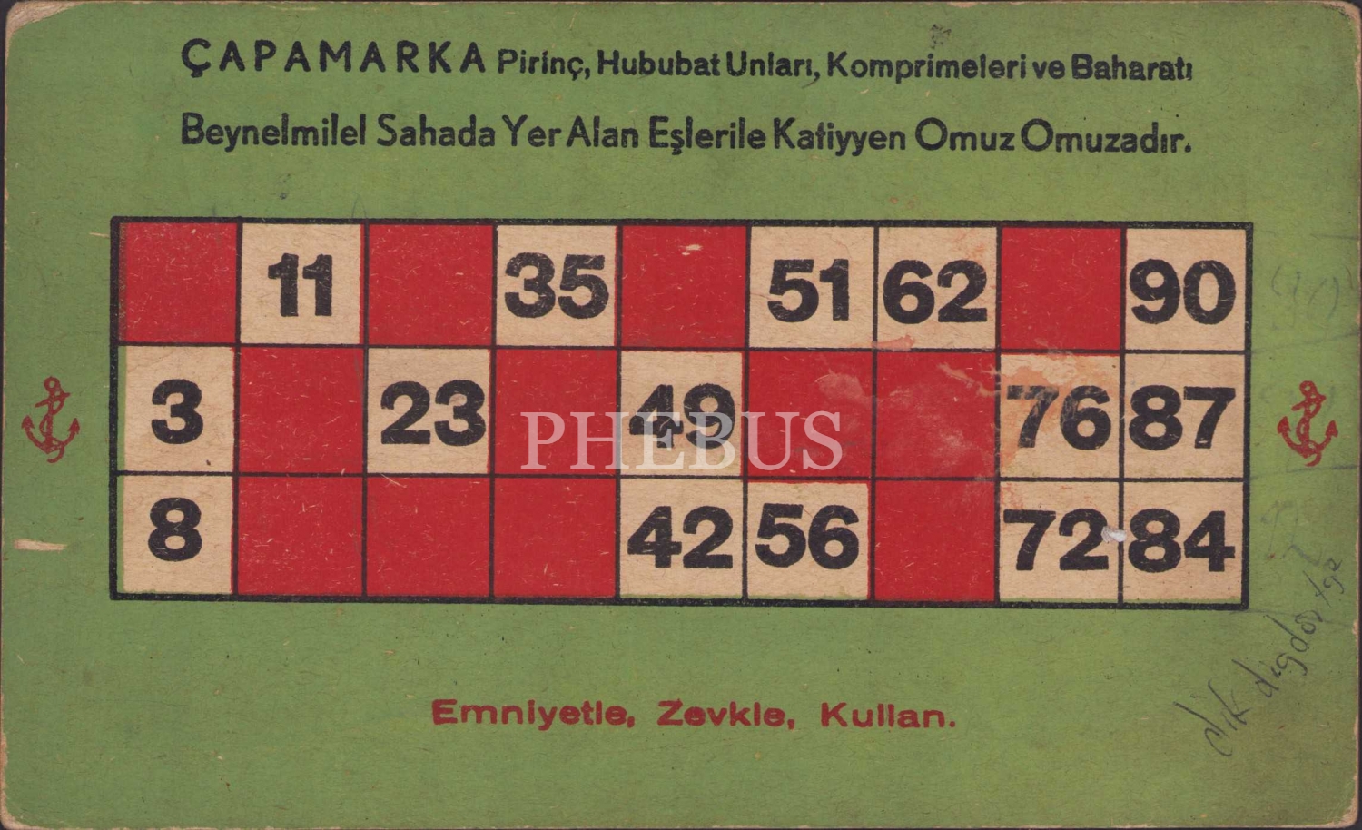 Çapamarka Pirinç, Hububat Unları, Komprimeleri ve Baharatı, Tombala Formunda Reklam Kartoneti, 12x19 cm