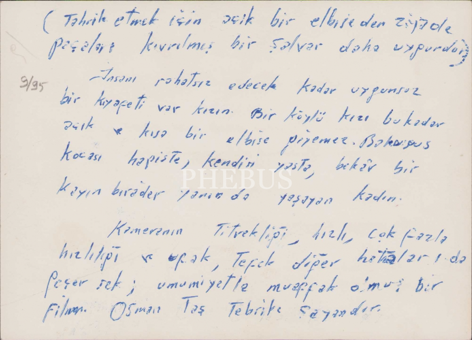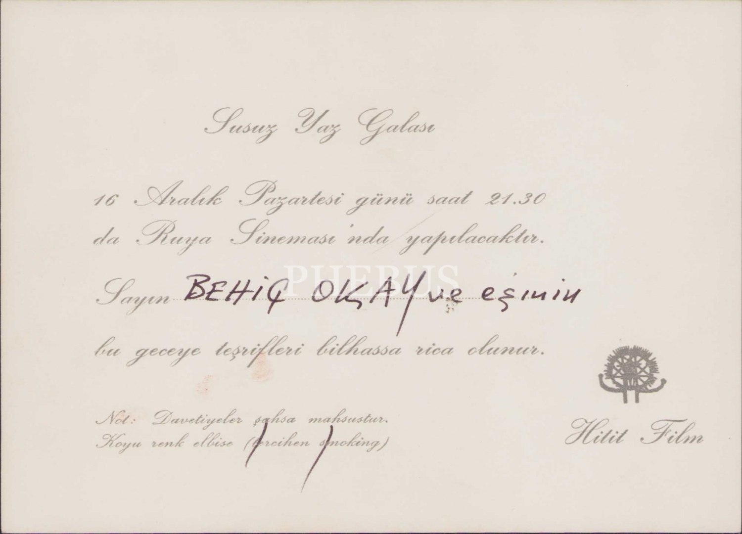 Behiç Okay'a Gönderilmiş Susuz Yaz Filminin Gala Davetiyesi, 17x12 cm