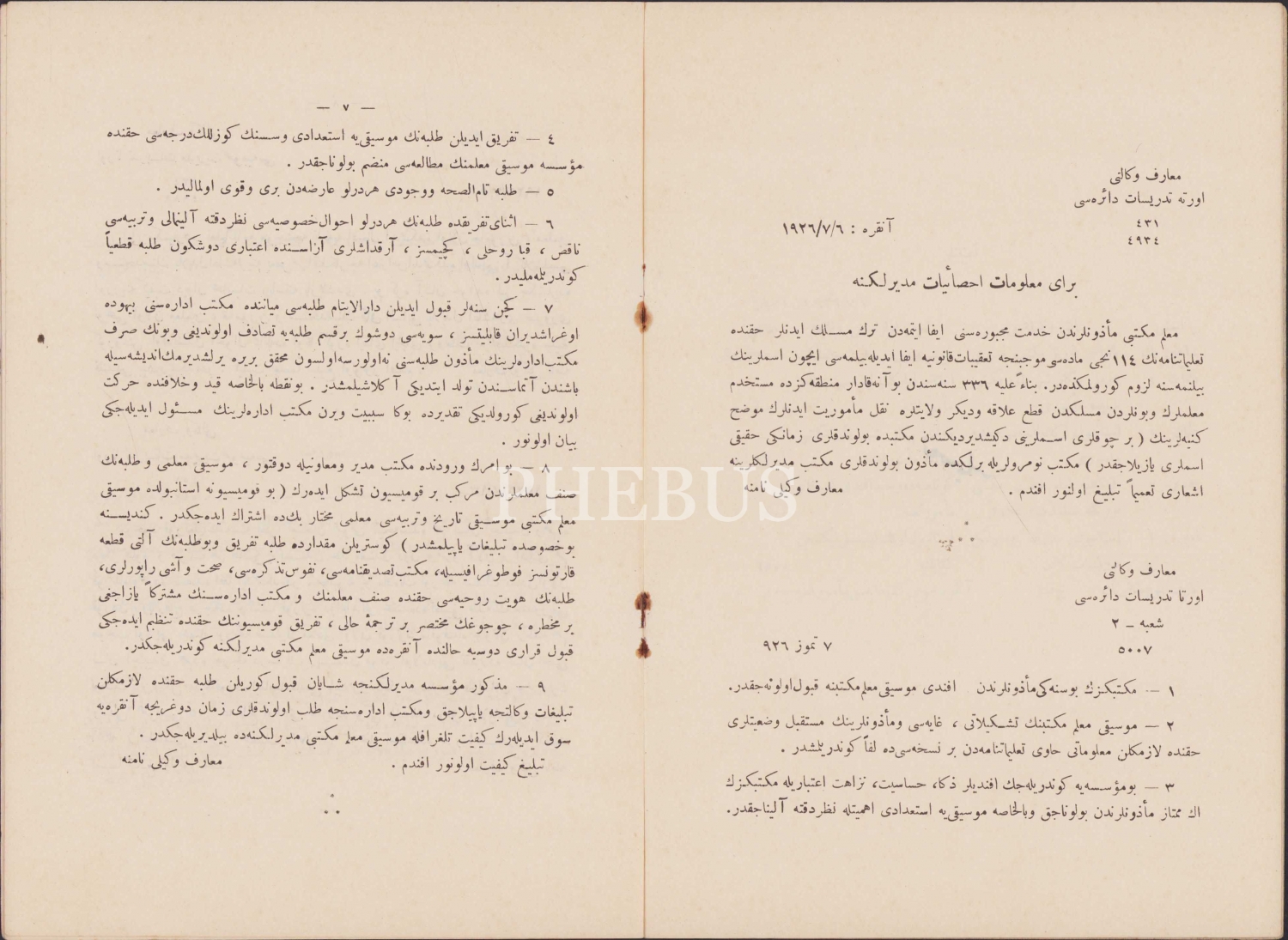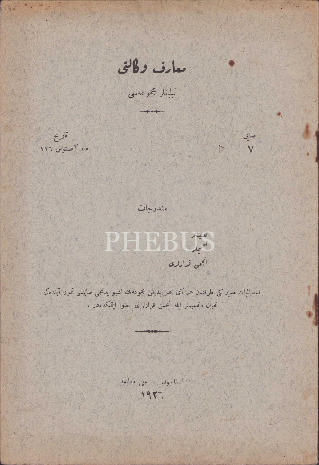 Osmanlıca Maarif Vekaleti Teblifler Mecmusı, 10 Ağustos 1926, Milli Matbaa, 1926, 18 sayfa, 15x22 cm