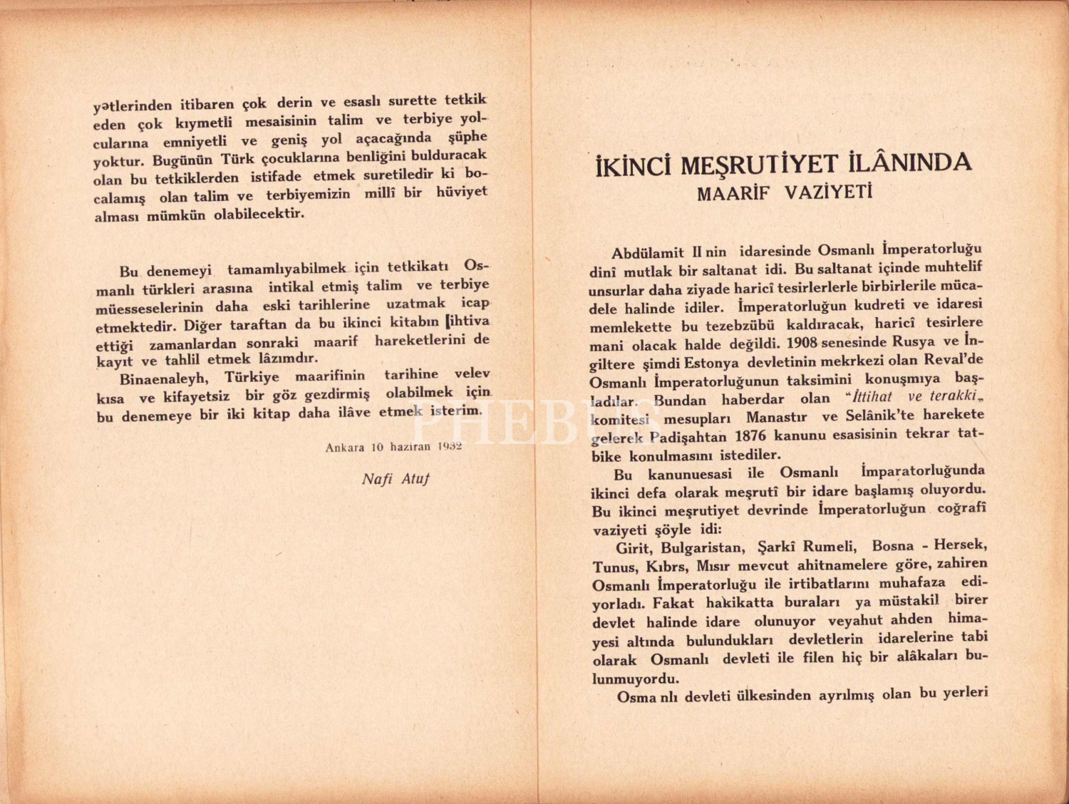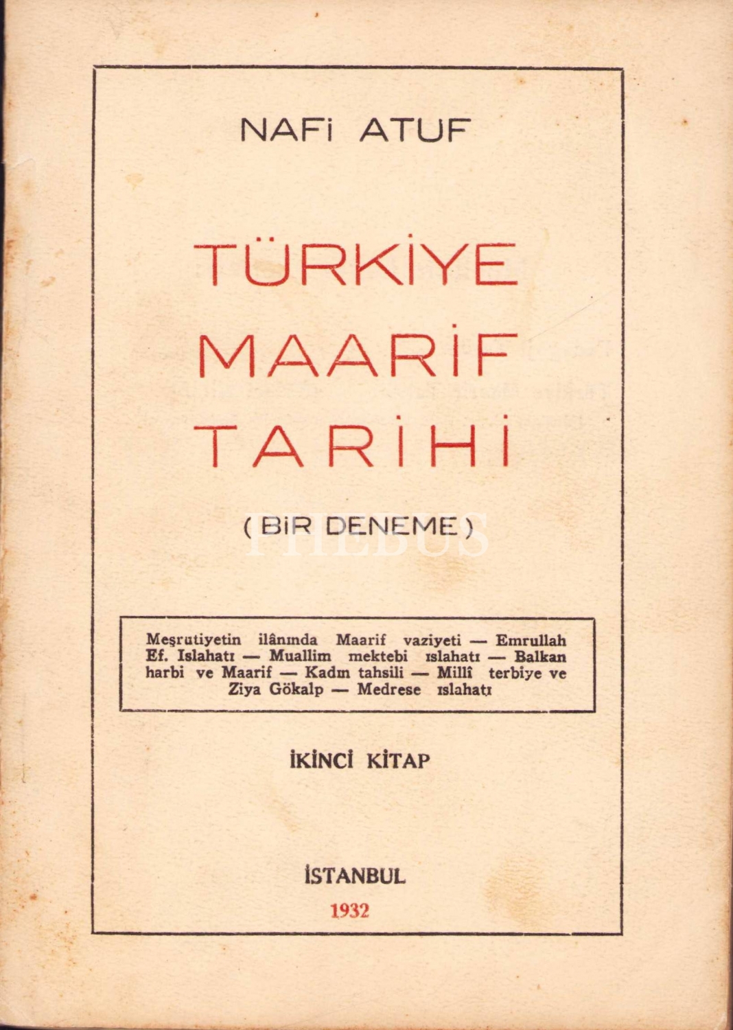 Türkiye Maarif Tarihi - Bir Deneme, Nafi Atuf, İkinci kitap, İstanbul, 1932, kapak haliyle, 132 sayfa, 13x18 cm