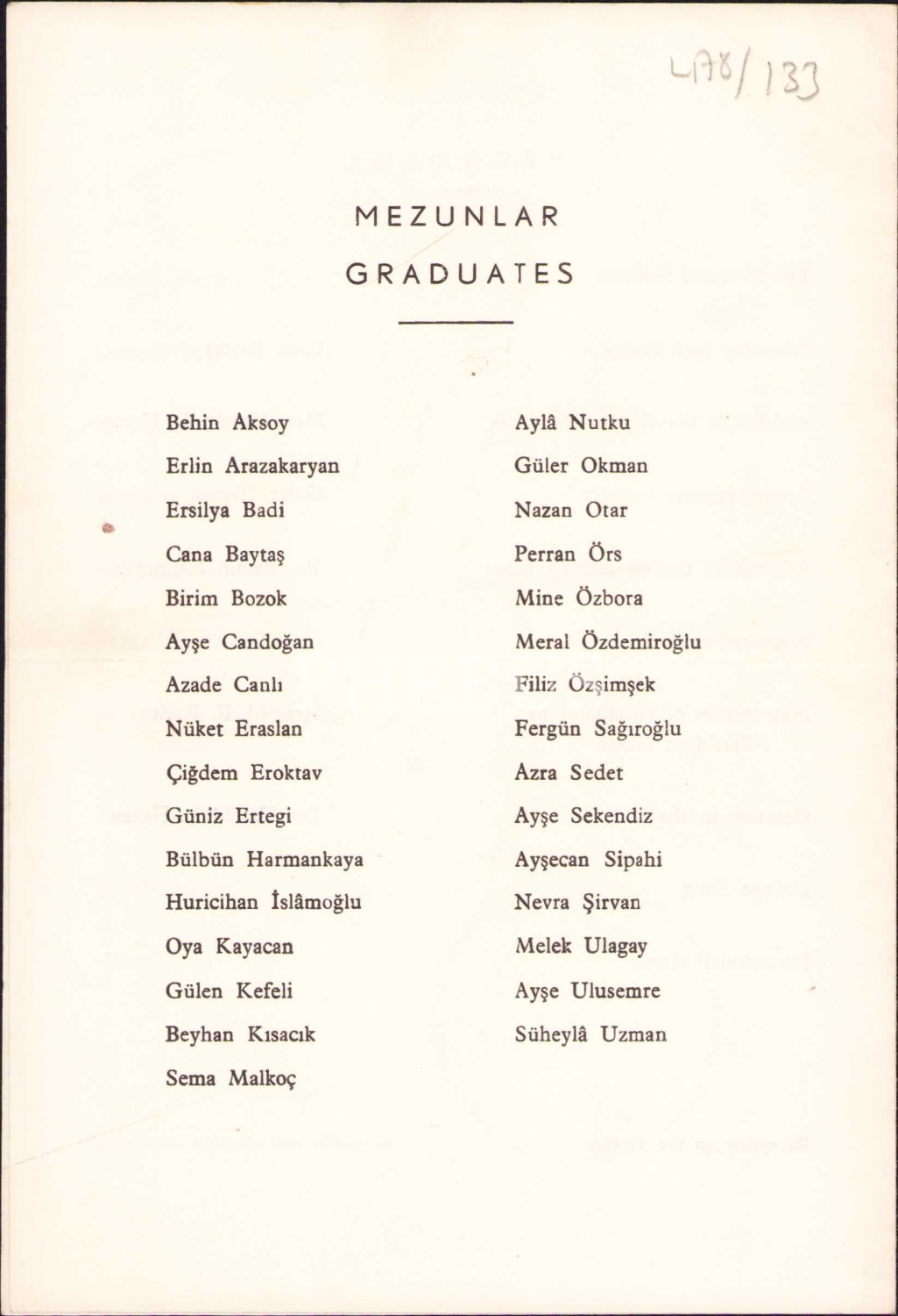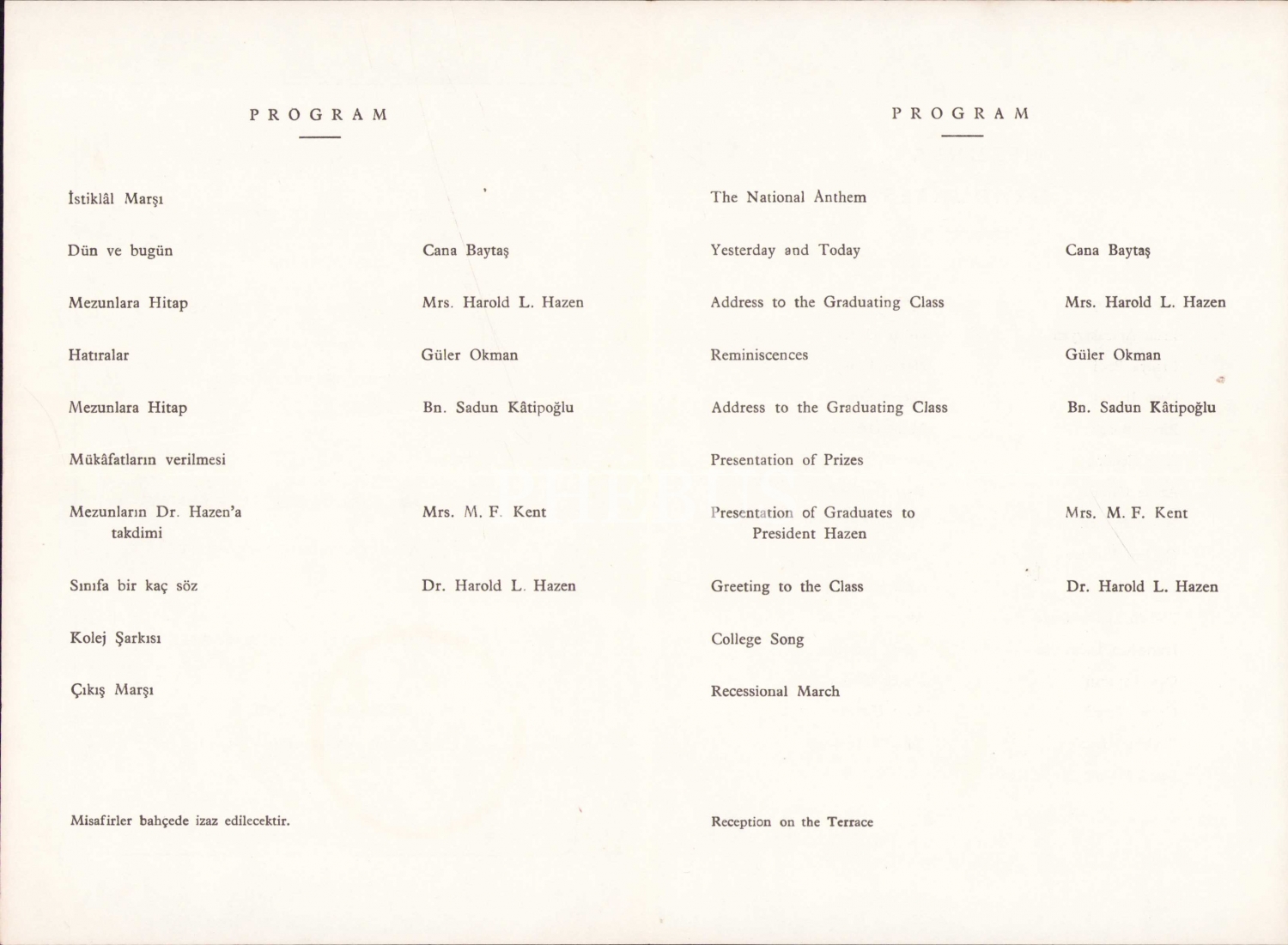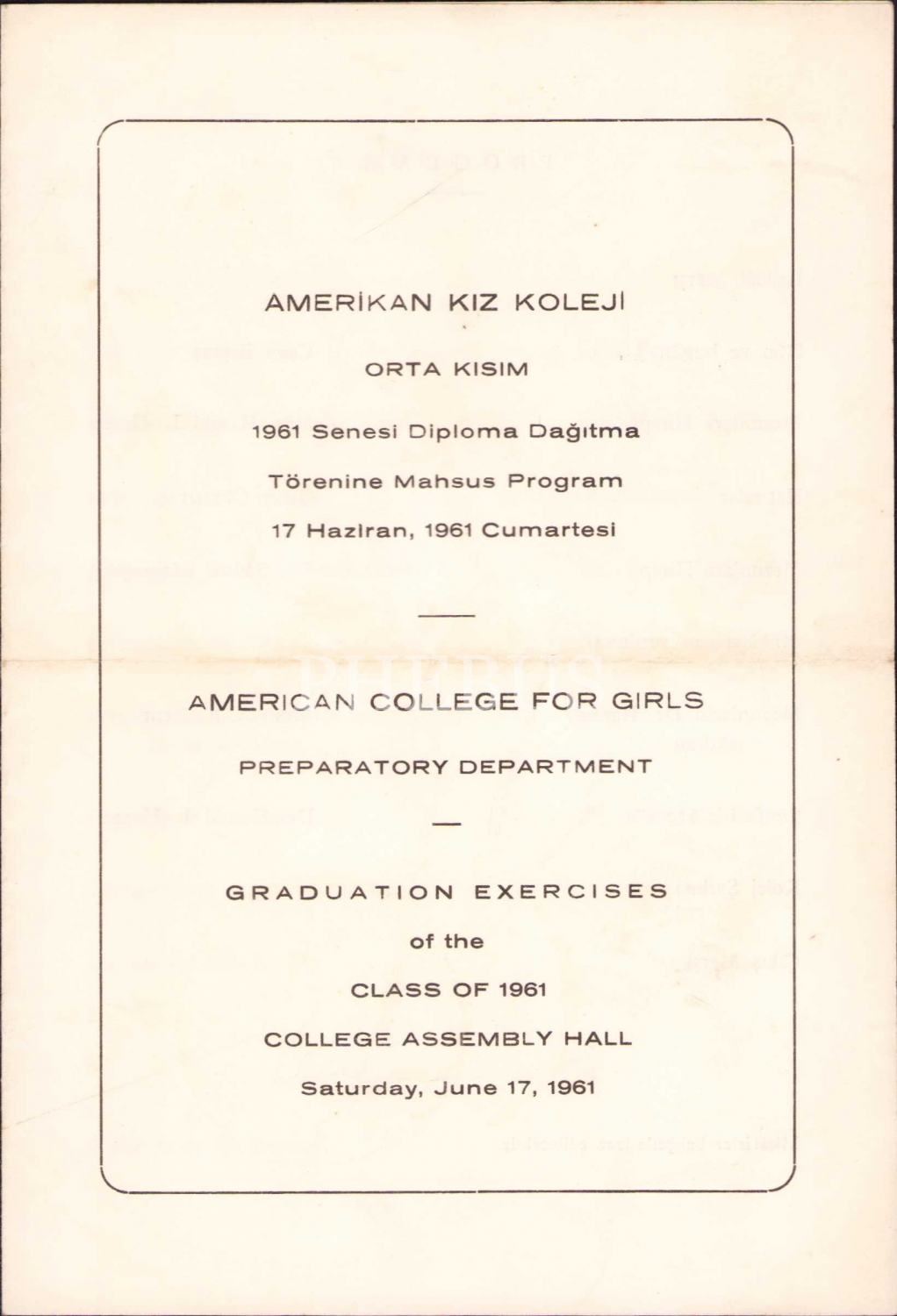 Amerikan Kız Koleji Orta Kısım 1961 Senesi Diploma Töreni Programı, 13x18 cm