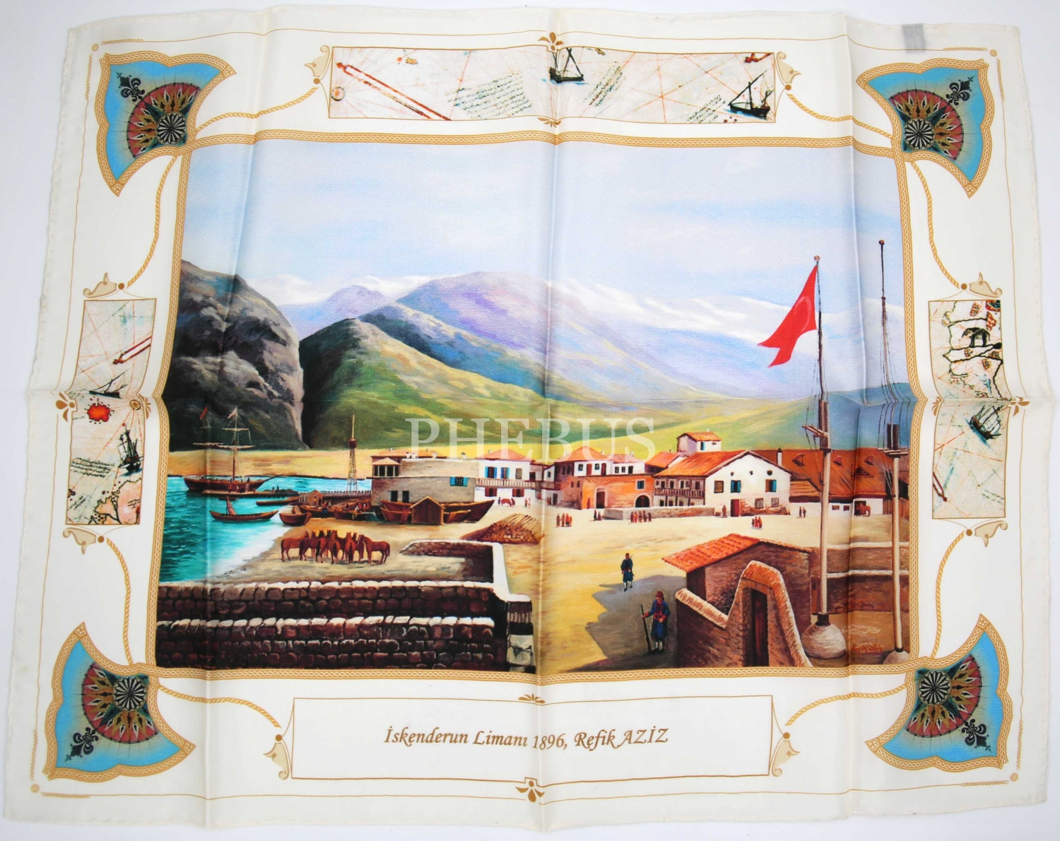 Deniz Müzesi Kabında Yakacık'tan İskenderun görselli İpek Mendil, 26x20 cm