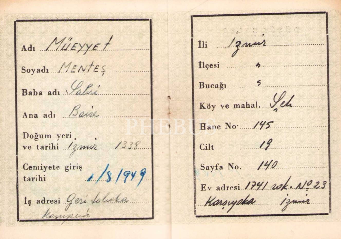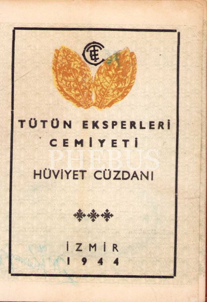 Tütün Eksperleri Cemiyeti hüviyet cüzdanı, İzmir 1944, 7x10 cm